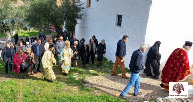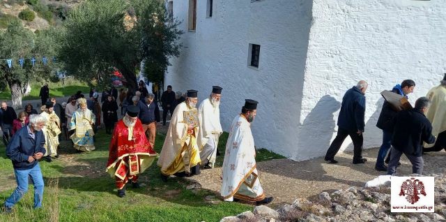 Τέλος, ακολούθησε η καθιερωμένη λιτάνευση της ιερής εικόνας και αποτμήματος των ιερών λειψάνων του Αγίου γύρωθεν του Μετοχίου.