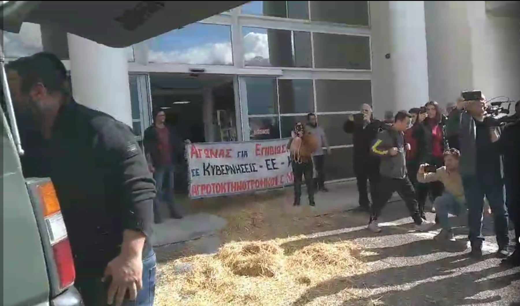 Στη συνέχεια, με αγροτικά, φορτηγά και τρακτέρ που αφίχθησαν από το μπλόκο στην ΕΟ Σπάρτης-Γυθείου, πραγματοποίησαν ειρηνική μηχανοκίνητη πορεία με κορναρίσματα, διασχίζοντας τη Λυκούργου και στη συνέχεια μέσω της περιμετρικής οδού και της Γυθείου κατευθύνθηκαν στο Διοικητήριο Λακωνίας. Εκεί, οι εκπρόσωποι αγροτοκτηνοτρόφων-μελισσοκόμων κατέθεσαν τις αξιώσεις τους στον διευθυντή της Δ/νσης Αγροτικής Οικονομίας & Κτηνιατρικής ΠΕ Λακωνίας, ενώ ακολούθως, ως ένδειξη διαμαρτυρίας, σκόρπισαν σανό και έχυσαν γάλα στην είσοδο του Διοικητηρίου.