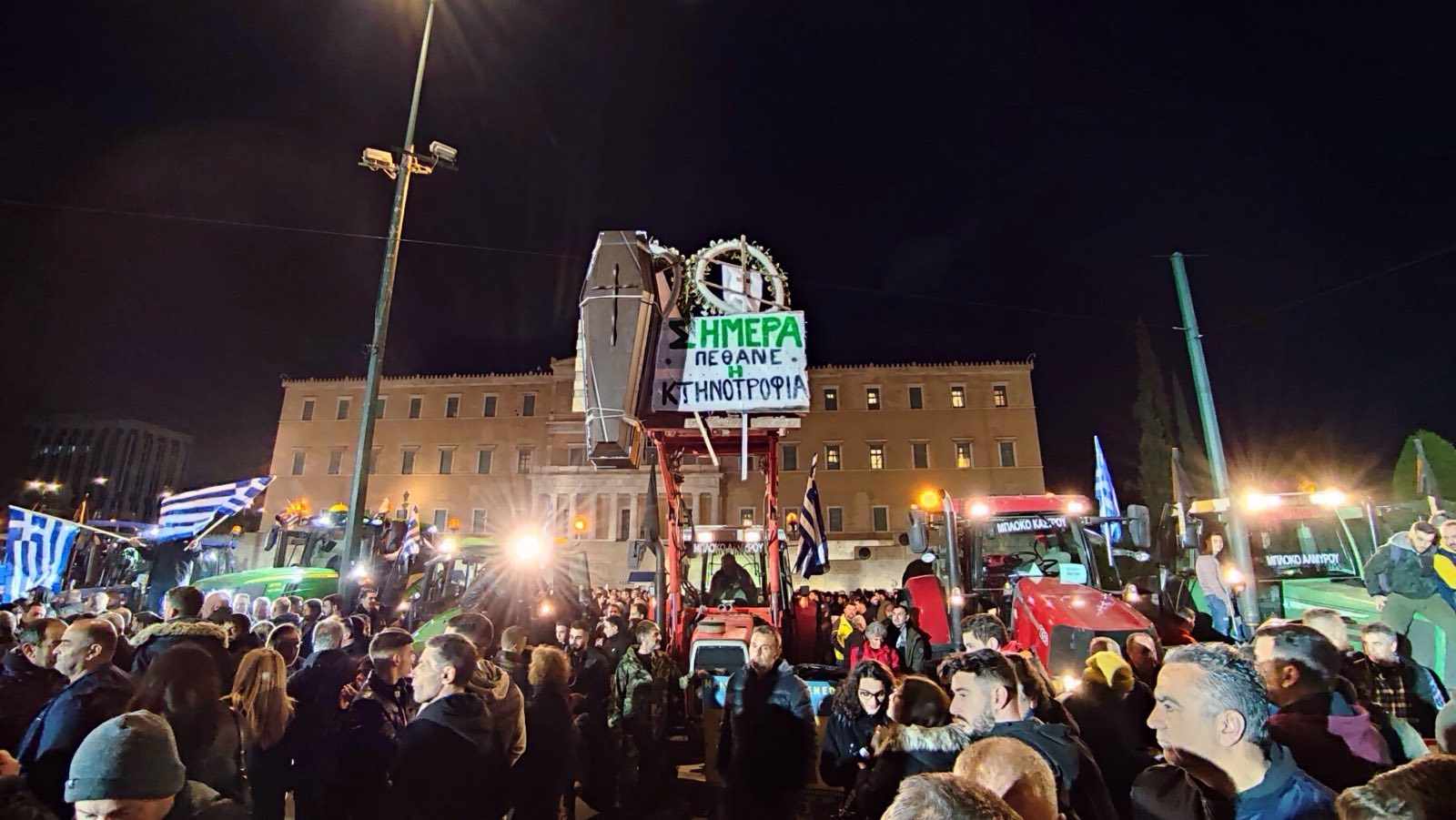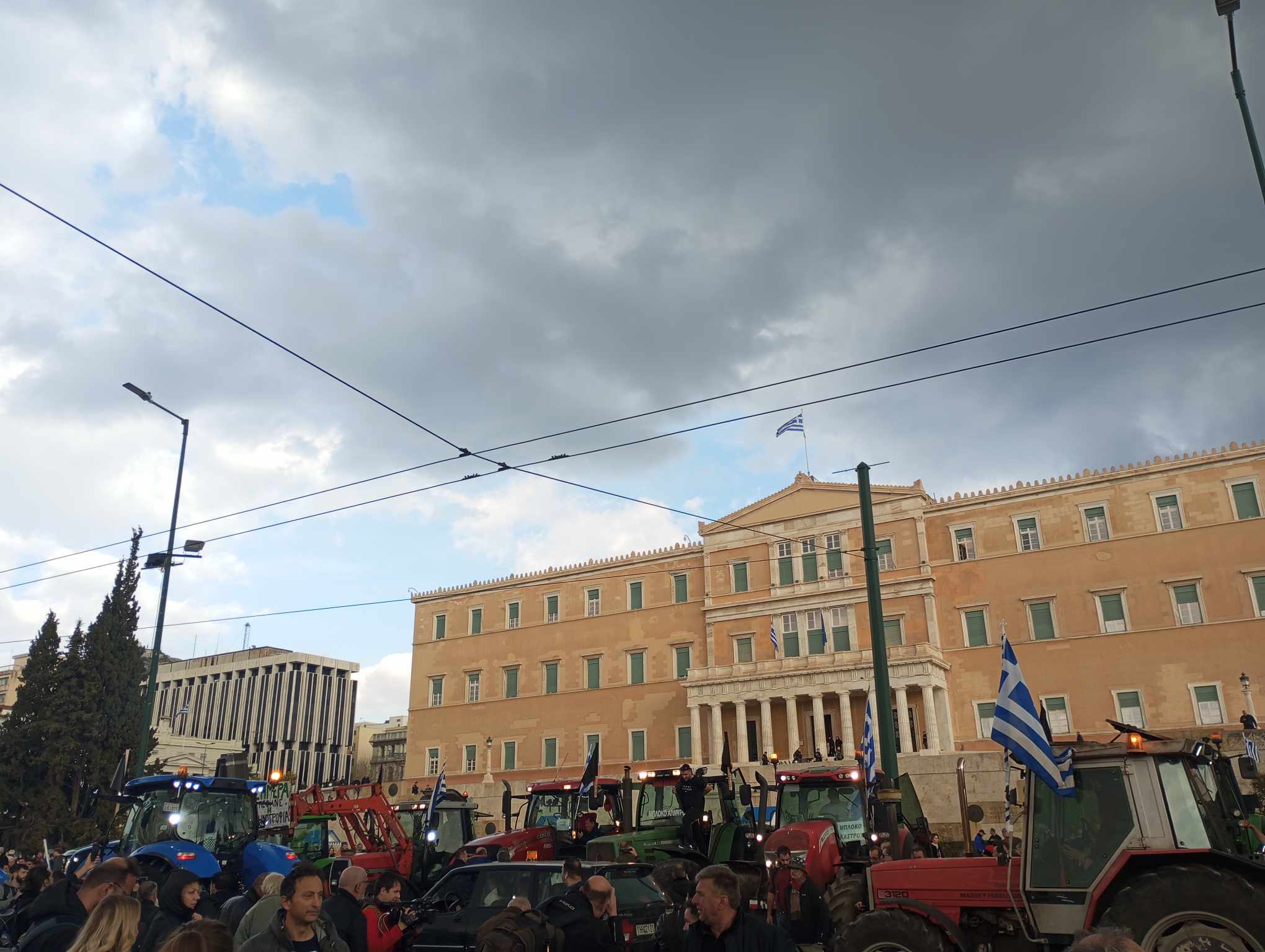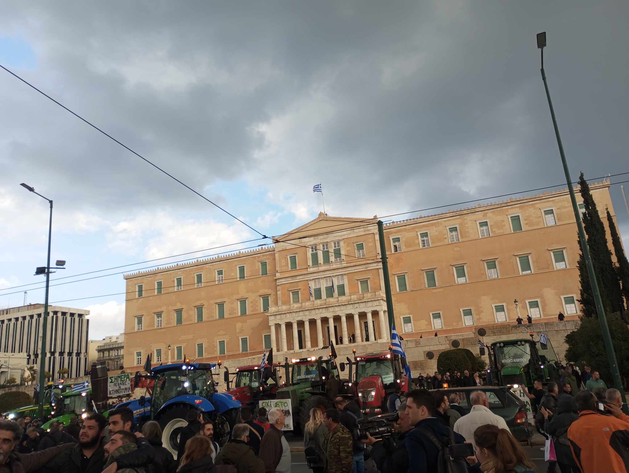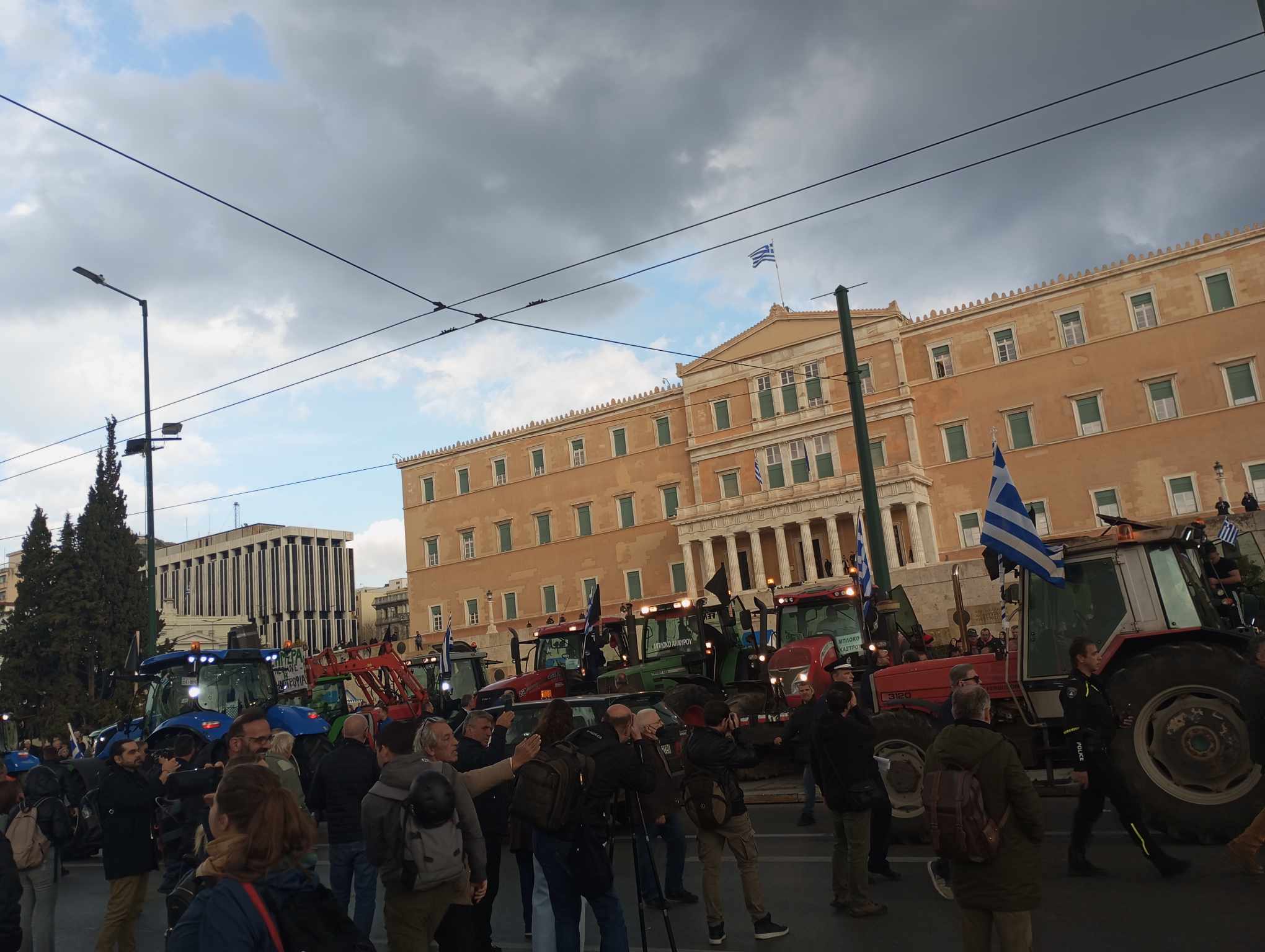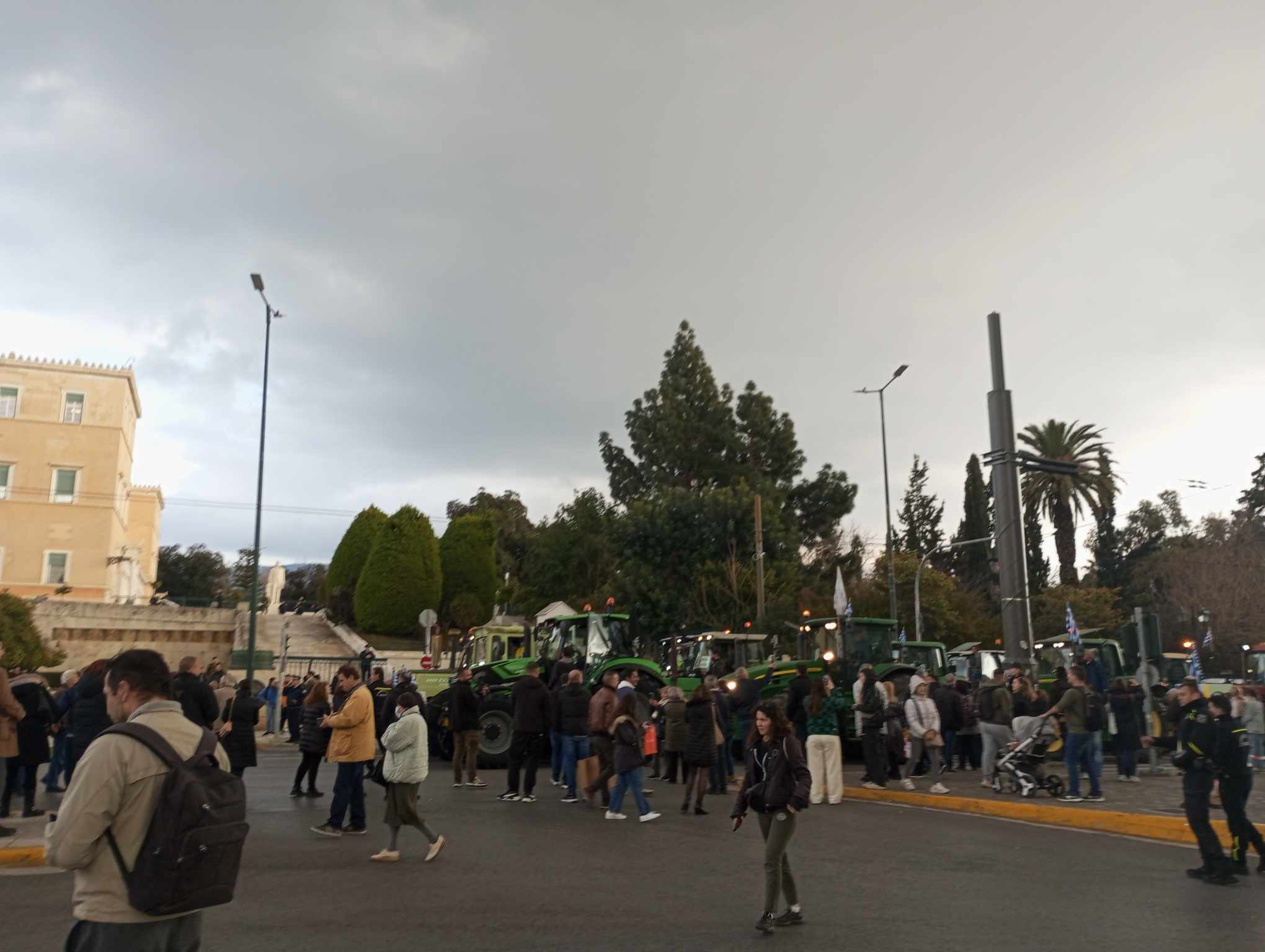 Το αγροτικό συλλαλητήριο στο κέντρο της Αθήνας άρχισε να στήνεται ήδη από το μεσημέρι της Τρίτης. Δεκάδες τρακτέρ κατέκλυσαν τους δρόμους έξω από τη Βουλή, ενώ αγρότες από όλη τη χώρα κατέφτασαν πεζοί και πήραν θέσεις μπροστά από τον «ναό της Δημοκρατίας», όπως και στις γύρω οδούς, Βασ. Αμαλίας, Βασ. Σοφίας, Όθωνος κ.α..