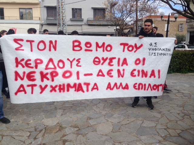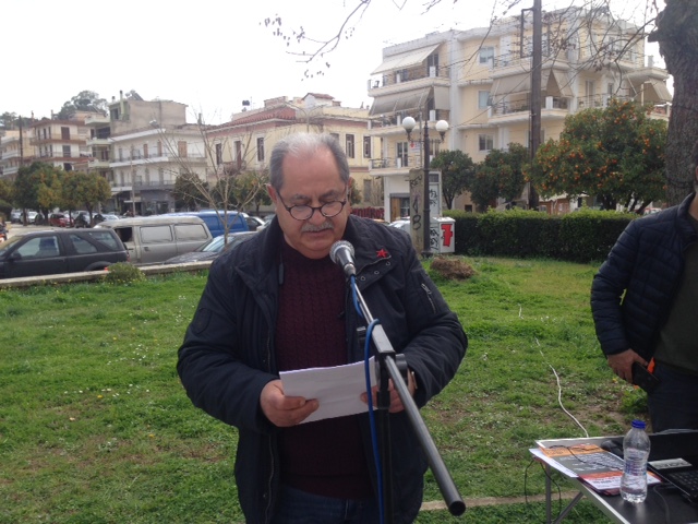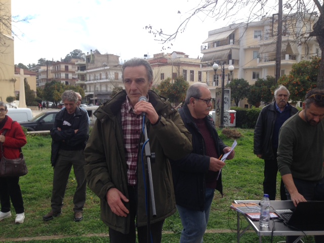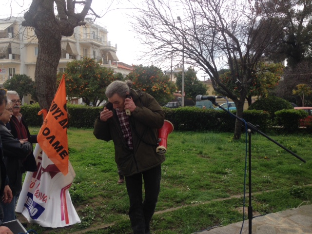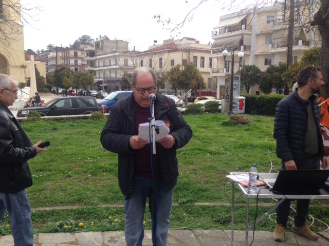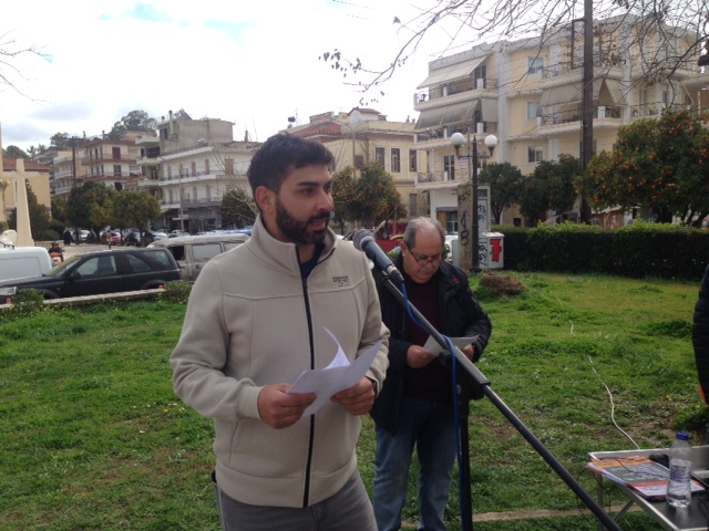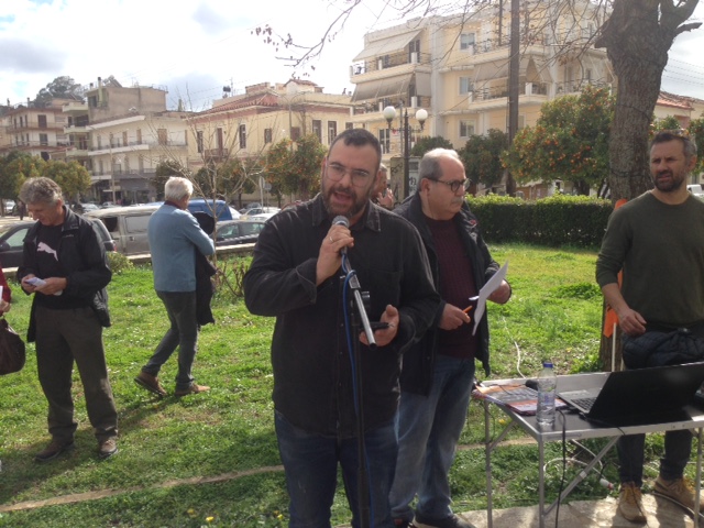 Ο Βασίλης Βρουλίτης, γραμματέας της Ομοσπονδίας Αγροτικών Συλλόγων Περ. Πελ/νήσου (ΟΑΣΠΠ), είπε απλά «ή τα κέρδη τους ή οι ζωές μας», χαιρέτησε την παρουσία φοιτητών και φορέων και έθεσε τα αιτήματα αγροτών και κτηνοτρόφων όπως αναδείχθηκαν στις πρόσφατες κινητοποιήσεις.