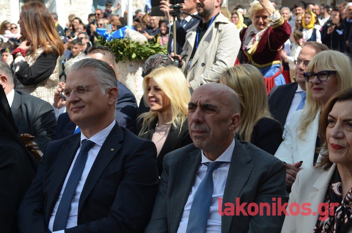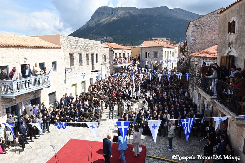 Από πλευράς του, ο περιφερειάρχης Πελοποννήσου, Δημήτρης Πτωχός, τόνισε «τη δίψα για ελεύθερο και ανεξάρτητο αέρα που ένωσε τους Μανιάτες» και έστειλε το μήνυμα πως «η κοινή θέληση πρέπει να ενώνει σήμερα και εμάς. Θέληση για συνεργασία. Θέληση για αλληλεγγύη. Θέληση για πρόοδο και εξέλιξη. Θέληση για να ανεβάζουμε κάθε μέρα τη πατρίδα μας ψηλότερα».