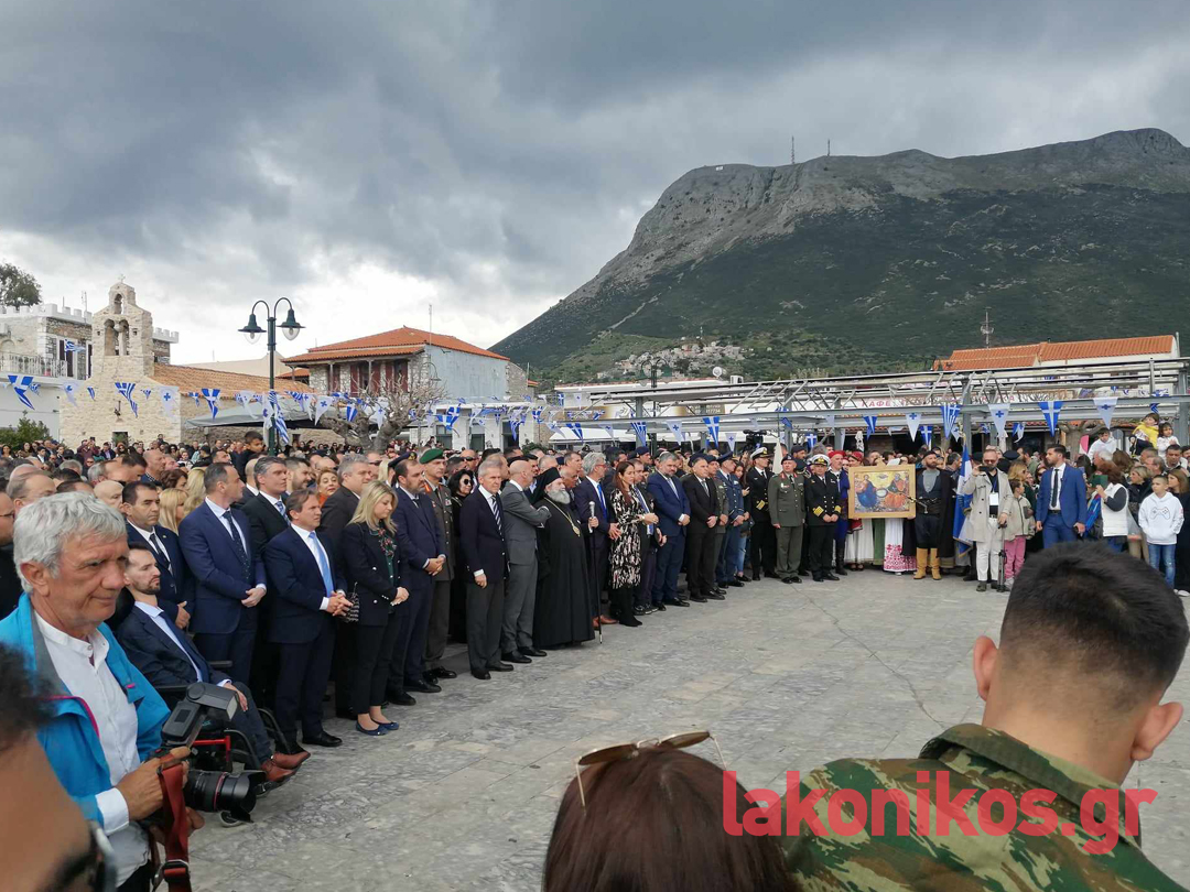 Τις εκδηλώσεις τίμησαν με την παρουσία τους ο Αρχηγός ΓΕΕΘΑ, Στρατηγός Δημήτριος Χούπης, ο διοικητής 1ης Στρατιάς Αντιστράτηγος Δημόκριτος Κωνσταντάκος, ο Γενικός Περιφερειακός Αστυνομικός Διευθυντής Πελοποννήσου, Υποστράτηγος Ηλίας Αξιοτόπουλος, η Εισαγγελέας Πρωτοδικών Γυθείου Ελένη Γυπαράκη, εκπρόσωποι κομμάτων του Κοινοβουλίου, της Αυτοδιοίκησης και των Σωμάτων Ασφαλείας, εκπρόσωποι συλλόγων και φορέων από αρκετές περιοχές της χώρας και πλήθος κόσμου.