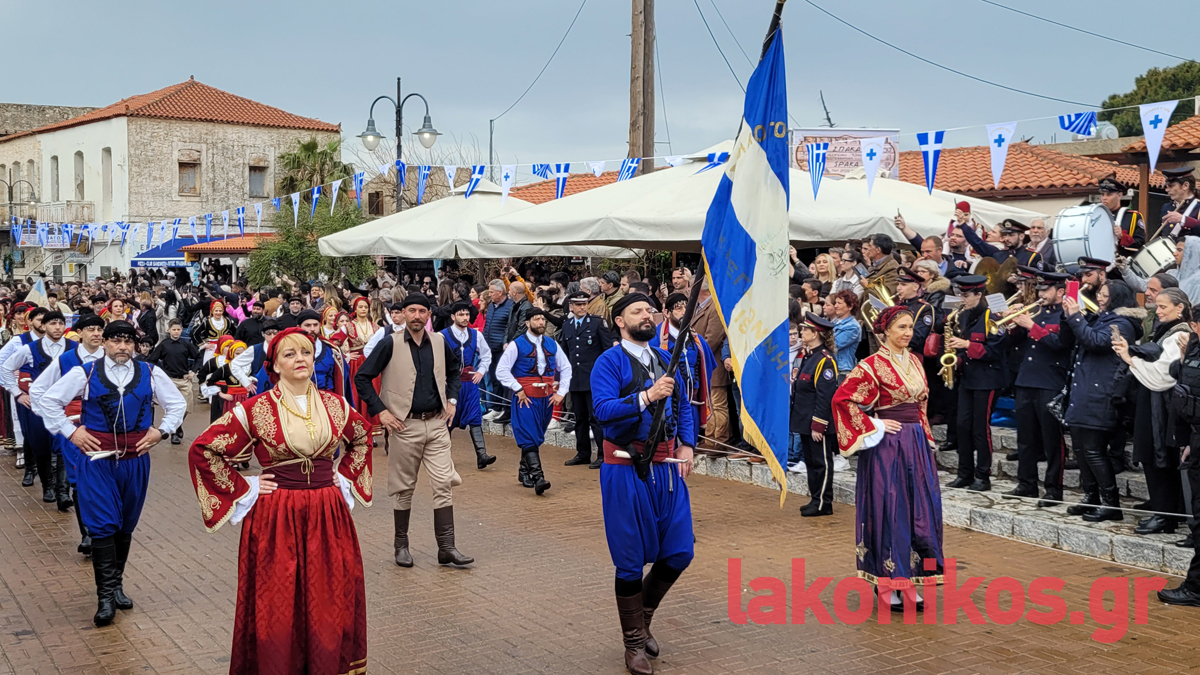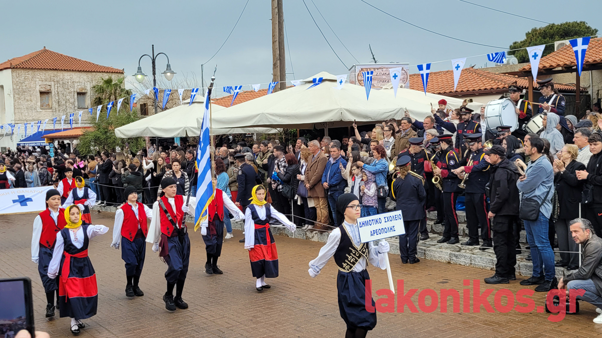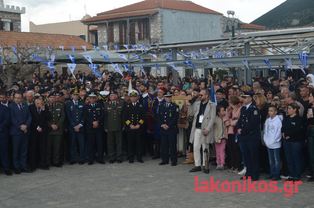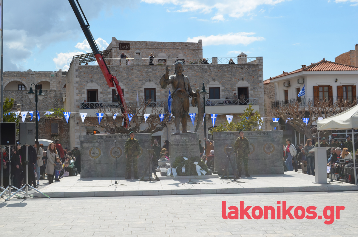 Με λαμπρότητα και πάνδημη συμμετοχή κορυφώθηκαν την Κυριακή 17 Μαρτίου, οι εκδηλώσεις για την επέτειο έναρξης της Επανάστασης του 1821 στην Αρεόπολη Αν. Μάνης.