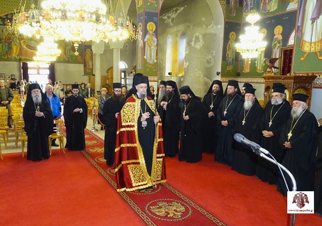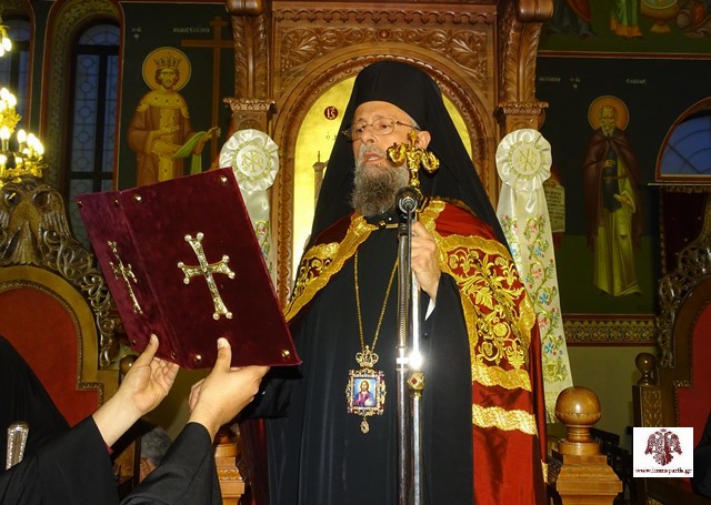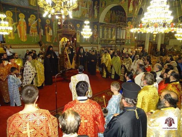 Ειδικότερα, ο φετινός εορτασμός ξεκίνησε το απόγευμα του Σαββάτου με την τέλεση του πανηγυρικού Τρισαρχιερατικού Εσπερινού μετ’ αρτοκλασίας, στον οποίο χοροστάτησε, ως προσκεκλημένος του σεπτού Ποιμενάρχη, ο Θεοφιλέστατος Επίσκοπος Τανάγρας κ. Απόστολος. Στον Εσπερινό συμμετείχαν επίσης ο Βοηθός Επίσκοπος της Ιεράς Μητρόπολης Θεοφιλέστατος Επίσκοπος Λακεδαιμονίας κ. Θεόφιλος, και πλειάδα κληρικών από την μητροπολιτική μας περιφέρεια.