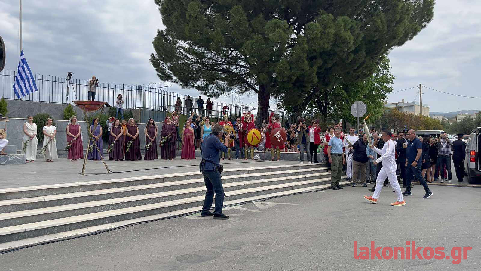 Ο θρύλος του Σπάρταθλον, Γιάννης Κούρος, έλαβε τη Φλόγα από τον Αθ. Στρίγκα, στη συμβολή των Κ. Παλαιολόγου - Οθ. Αμαλίας και με σταθερό ρυθμό βάδισε στην κεντρική λεωφόρο ως το ύψος της Βρασίδου. Εκεί ανέμενε ο Γιώργος Κουλόγιαννης, ο οποίος πήρε τη σκυτάλη του Φωτός και διανύοντας τα τελευταία μέτρα της πορείας, ήταν εκείνος που άναψε τον βωμό που είχε στηθεί μπροστά από το Δημοτικό Στάδιο Σπάρτης. Υπό το άγρυπνο βλέμμα του βασιλιά Λεωνίδα και υπό το ζεστό χειροκρότημα των εκπροσώπων αρχών-φορέων και των απλών πολιτών που είχαν συρρεύσει στο σημείο, η ατμόσφαιρα ήταν γιορτινή και κατανυκτική.