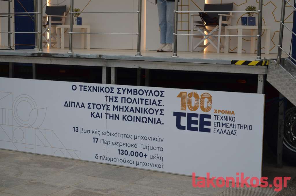 Το «ταξίδι» του «TEE Roadshow» στην Πελοπόννησο ξεκίνησε τη Δευτέρα (22/4) από την Καλαμάτα, ενώ επόμενος σταθμός ήταν την Τρίτη (23/4) η Σπάρτη. Στην κεντρική πλατεία της πόλης αφίχθη κλιμάκιο με επικεφαλής τον πρόεδρο του ΤΕΕ Ελλάδας, κ. Γιώργο Στασινό, που προχώρησε σε ενημέρωση των πολιτών με τη διανομή σχετικού υλικού. Στον χώρο δέσποζε το μεγάλο φορτηγό που στάθμευσε επί της πλατείας, όπου πρόσχαρες κοπέλες ήταν πρόθυμες να απαντήσουν σε κάθε ερώτηση των περαστικών, ενώ παρόντες ήταν αρκετοί επαγγελματίες μηχανικοί της Λακωνίας.