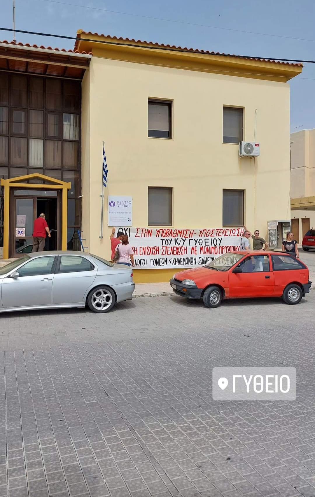 Με σφιγμένα πρόσωπα, οι γονείς-μέλη των 5 συλλόγων γονέων και κηδεμόνων από τις σχολικές μονάδες του Γυθείου, πήραν μέρος σε πορεία και παράσταση διαμαρτυρίας στον χώρο του Κέντρου Υγείας Γυθείου, την Τρίτη (21/5). Οι σύλλογοι από το Γυμνάσιο Γυθείου, το Λύκειο Γυθείου, αλλά και από το 1ο, 2ο και 3ο Δημοτικό Σχολείο της πόλης, συγκεντρώθηκαν στην είσοδο του λιμανιού κι από εκεί πορεύτηκαν ως τη μονάδα υγείας, όπου παρέμειναν για μισή ώρα περίπου. Συνάντησαν και συνομίλησαν με το ιατρικό και νοσηλευτικό προσωπικό, υπογραμμίζοντας την αμέριστη στήριξή στο έργο του. Τόνισαν την ανάγκη διατήρησης σε λειτουργία του ΚΥ, αλλά και της περαιτέρω ενίσχυσής του. Από τη συζήτηση και την ανταλλαγή απόψεων που ακολούθησε, αποκόμισαν την έντονη ανησυχία γιατρών και νοσηλευτών για το τι μέλλει γενέσθαι τον μήνα Ιούνιο. Ας επαναλάβουμε πως η εξάντληση των ανθρώπινων πόρων του ΚΥ θέτει σε κίνδυνο τη λειτουργία του, ενώ η άρνηση γιατρών του να μετακινηθούν για εφημερίες στο ΓΝ Σπάρτης, δημιούργησε σκηνικό ανοιχτής σύγκρουσης.