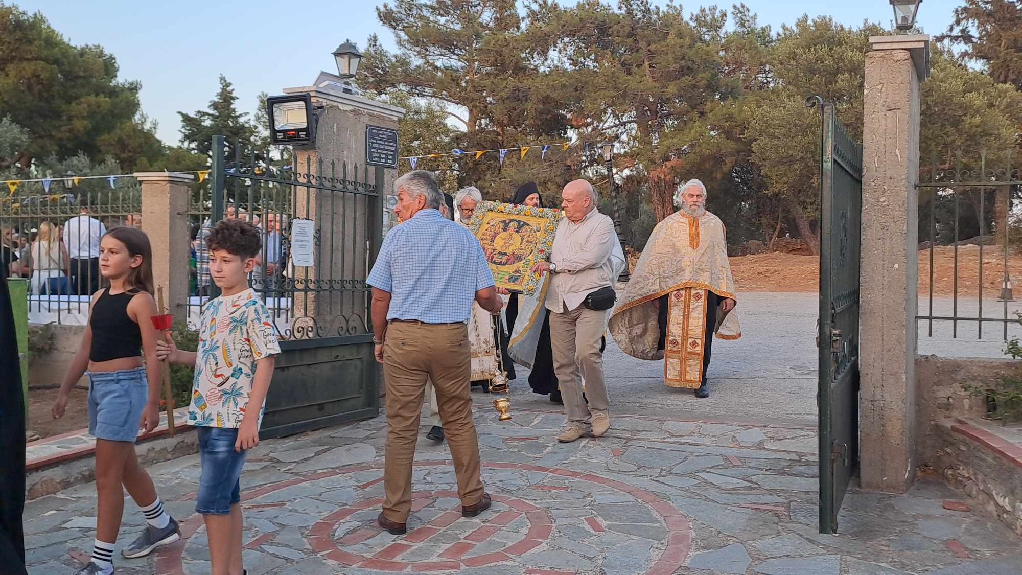 Την παραμονή της εορτής, Σάββατο (29/6), τελέστηκε πανηγυρικός εσπερινός, όπου χοροστάτησε ο πρωτοσύγκελος της Μητρόπολης Μάνης, π. Συμεών Λαμπρινάκος. Μετά τον εσπερινό, παρουσία πλήθους πιστών, έγινε λιτανεία της ιεράς εικόνας στον περιβάλλοντα χώρο της ΙΜ Αγίων Πάντων.