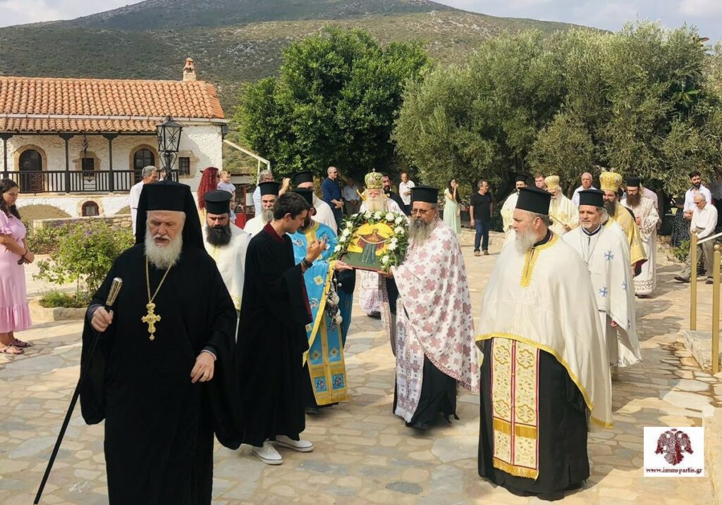 Η ιερή ακολουθία ολοκληρώθηκε με την περιφορά, πέριξ του καθολικού, της ιερής εικόνας και των ιερών λειψάνων, που φυλάσσονται στη μονή. Ακολούθησε, σε χαρμόσυνο κλίμα, το καθιερωμένο μοναστηριακό κέρασμα από την αδελφότητα της μονής σε όλους τους παρευρισκόμενους.