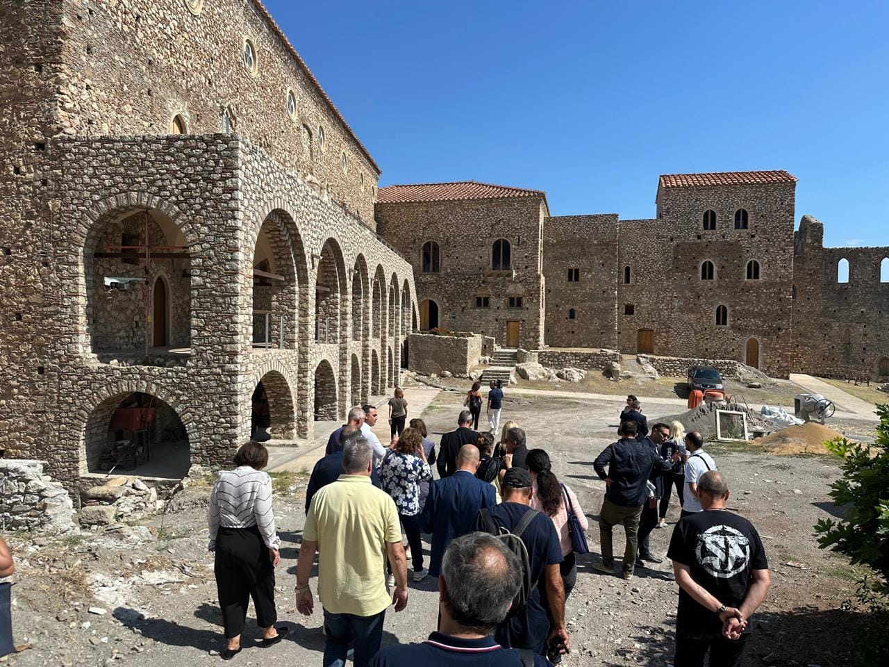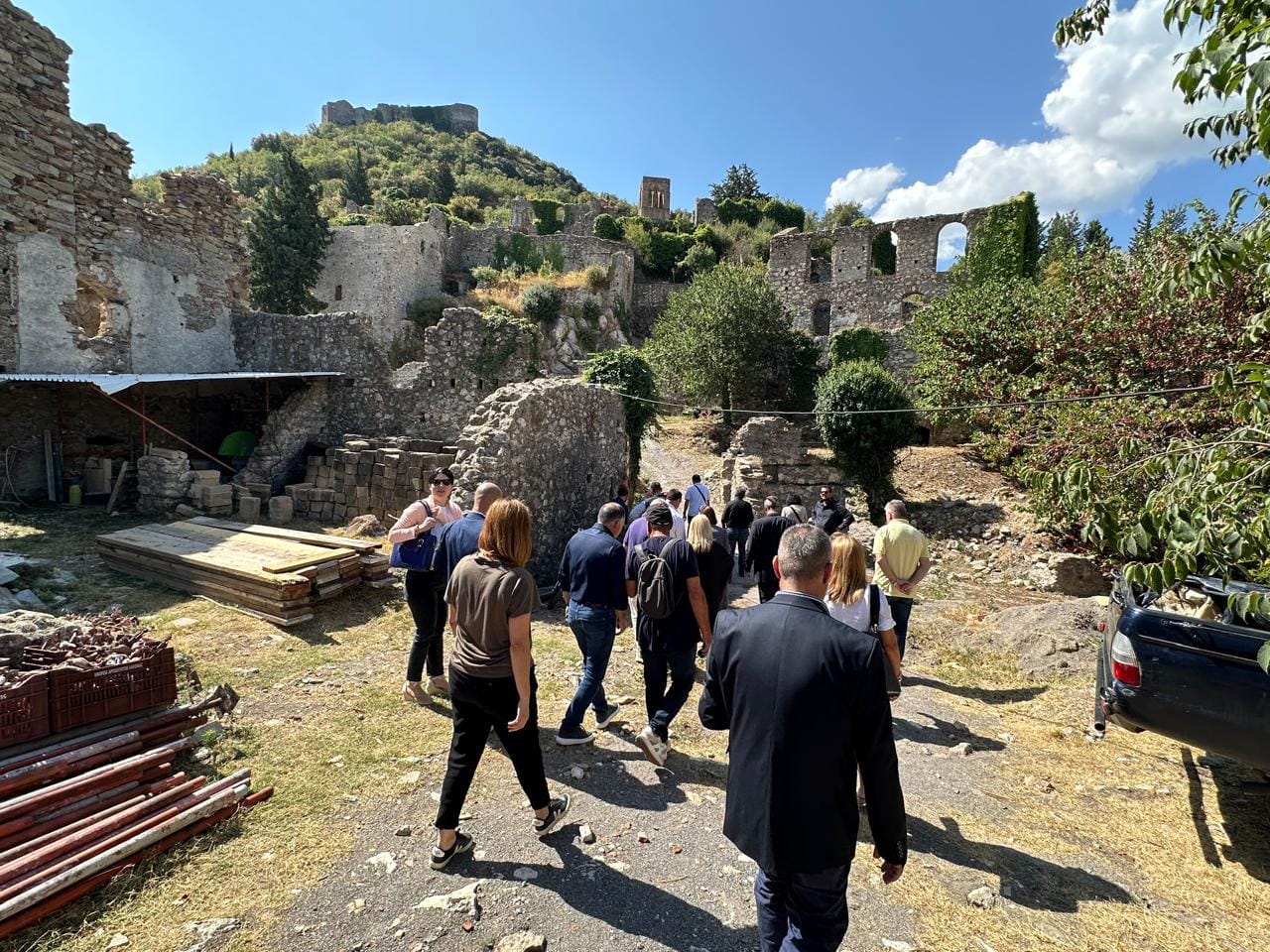Επόμενος σταθμός της περιήγησης της Λ. Μενδώνη σε αρχαιολογικούς χώρους στη Λακωνία, ήταν η καστροπολιτεία του Μυστρά, το πρωί της Δευτέρας (2/9). Συνοδευόμενη και από υπηρεσιακά στελέχη του Υπουργείου Πολιτισμού, η υπουργός ξεναγήθηκε από την προϊσταμένη της ΕΦΑΛΑΚ, Ευαγγελία Πάντου, στους χώρους τού υπό εξέλιξη έργου ανάδειξης του Παλατιού των Δεσποτών.