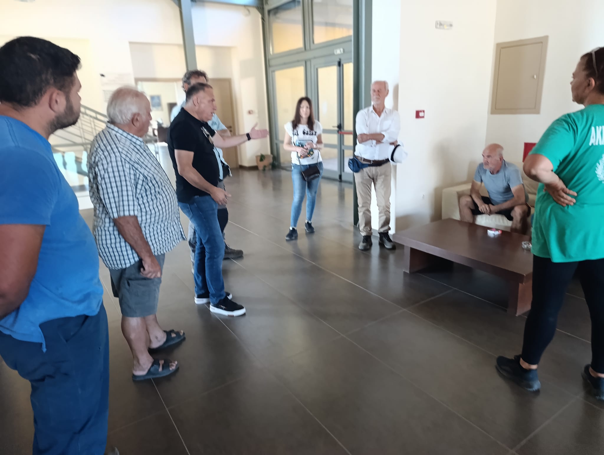Στο πλαίσιο της αυτοψίας, πραγματοποιήθηκε συνάντηση στο δημαρχείο Ασωπού, όπου έγινε η πρώτη ενημέρωση από τον αντιδήμαρχο Γιάννη Σούρλα, παρουσία και του βουλευτή Λακωνίας, Νεοκλή Κρητικού.