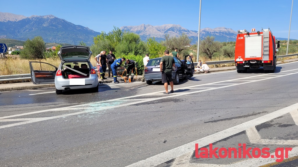 Υπό συνθήκες που διερευνώνται, τα δύο αυτοκίνητα τράκαραν μεταξύ τους, σε κόμβο στη συμβολή του παλαιού τμήματος της ΕΟ (μέσω Βουτιάνων) με το νέο οδικό σκέλος της παράκαμψης Σελλασίας. Σύμφωνα με πληροφορίες, το ένα όχημα είχε κατεύθυνση από Σπάρτη προς την παράκαμψη, ενώ το δεύτερο έβγαινε στην ΕΟ από τον δρόμο των Βουτιάνων.