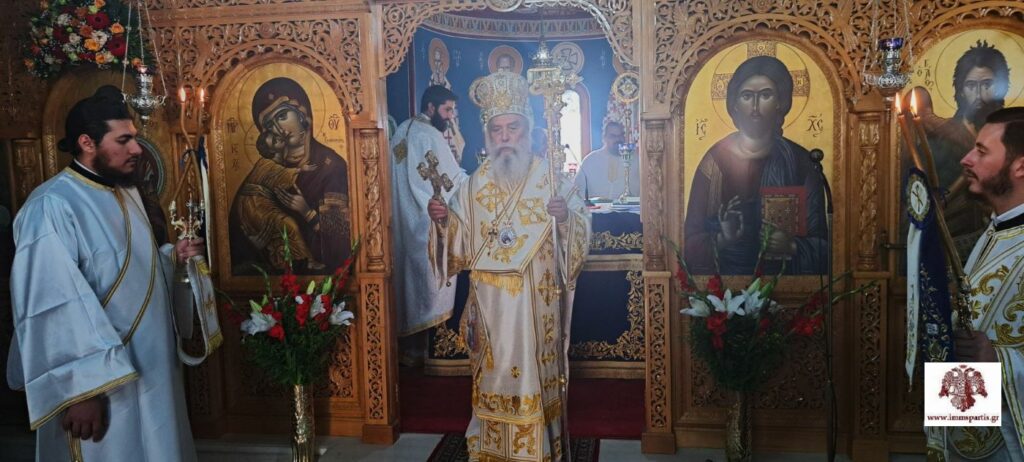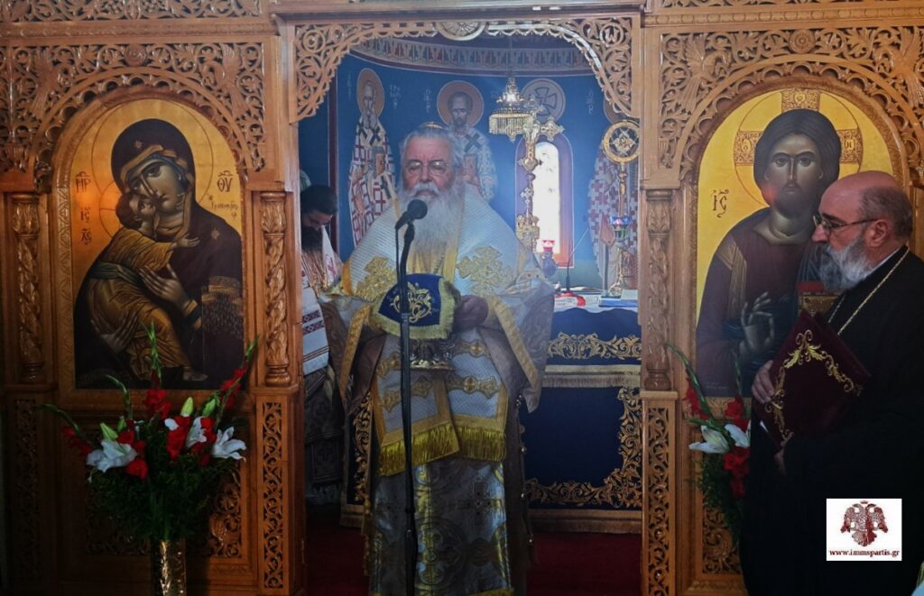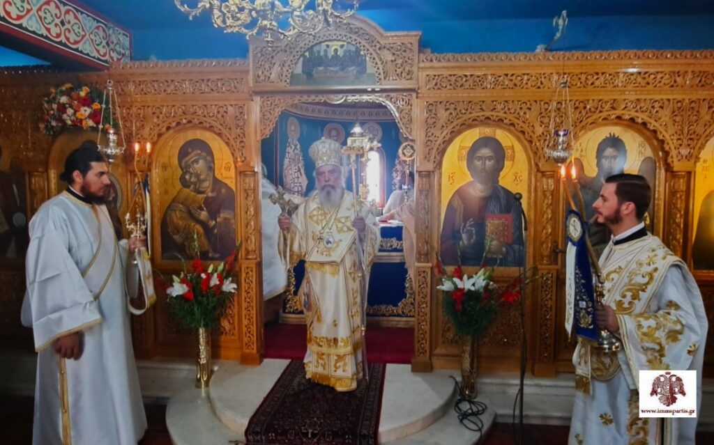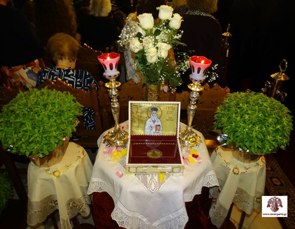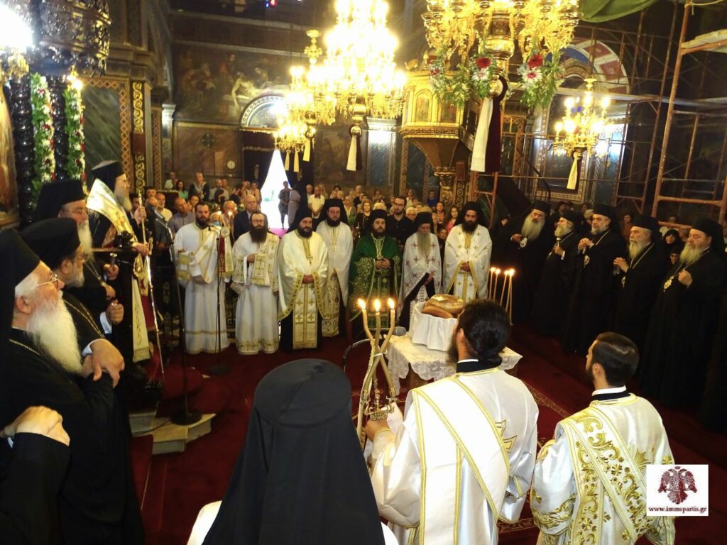 Πριν την πανηγυρική εσπερινή λατρευτική σύναξη, πραγματοποιήθηκε, με την πρέπουσα εκκλησιαστική λαμπρότητα και σε κλίμα κατάνυξης, η υποδοχή αποτμήματος του ιερού λειψάνου του προσφάτως αγιοκαταχθέντος Αγίου Γερβασίου του εκ Πατρών, το οποίο πρόσφερε στην τοπική Εκκλησία ο σεβασμιώτατος Μητροπολίτης Πατρών κ. Χρυσόστομος.