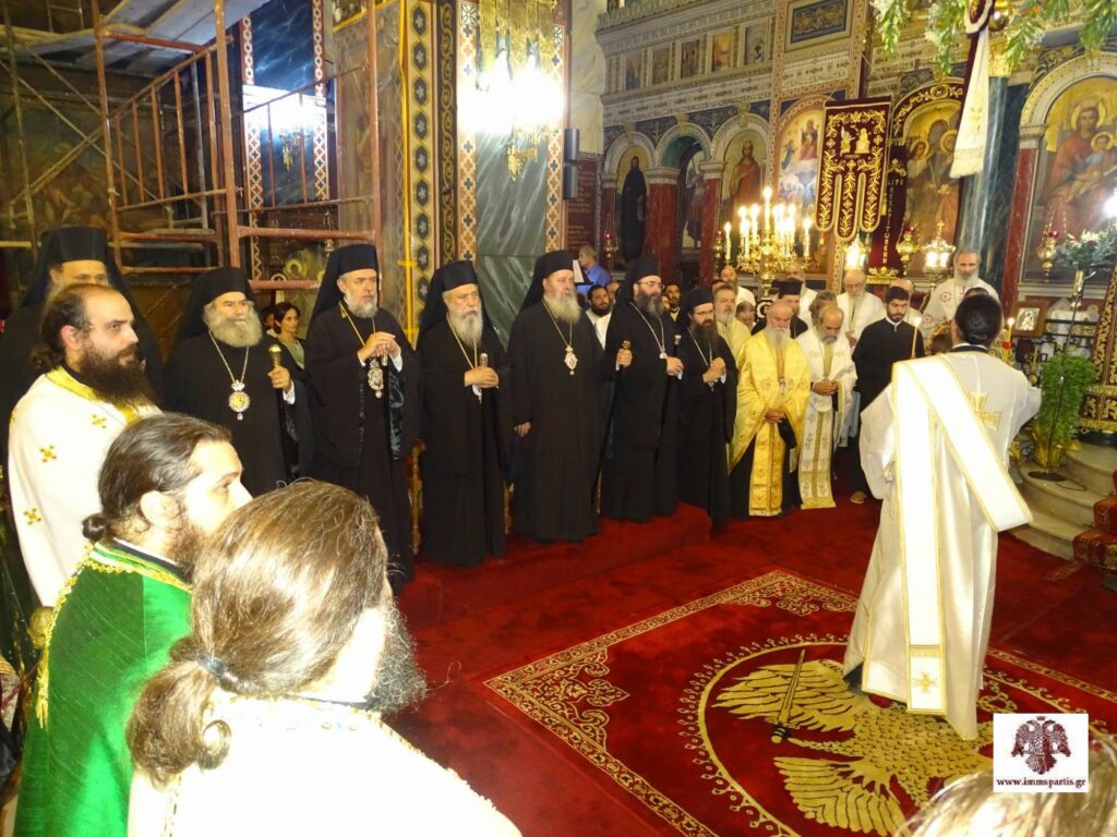 Στην εσπερινή λατρευτική σύναξη συμμετείχαν οι σεβασμιώτατοι Μητροπολίτες Σερβίων και Κοζάνης κ. Παύλος, Πατρών κ. Χρυσόστομος, Μεσσηνίας κ. Χρυσόστομος, Θηβών, Λεβαδείας και Αυλίδος κ. Γεώργιος, Σταγών και Μετεώρων κ. Θεόκλητος, Ιερισσού, Αγίου Όρους και Αρδαμερίου κ. Θεόκλητος, Μάνης κ. Χρυσόστομος, Γλυφάδας κ. Αντώνιος και Γόρτυνος και Μεγαλοπόλεως κ. Νικηφόρος. Επίσης, έλαβαν μέρος οι θεοφιλέστατοι Επίσκοποι Κερνίτσης κ. Χρύσανθος, Βοηθός Επίσκοπος της Μητρόπολης Πατρών, Τεγέας κ. Θεόκλητος, Βοηθός Επίσκοπος της Μητρόπολης Μαντινείας και Κυνουρίας, Λακεδαιμονίας κ. Θεόφιλος, Βοηθός Επίσκοπος της Μητρόπολης Μονεμβασίας & Σπάρτης (ΜΜΣ), ο αρχιγραμματέας της Ιεράς Συνόδου της Εκκλησίας της Ελλάδος, πανοσιολογιώτατος αρχιμανδρίτης Ιωάννης Καραμούζης και δεκάδες κληρικοί τόσο της ΙΜΜΣ, όσο και από άλλες περιοχές της χώρας.