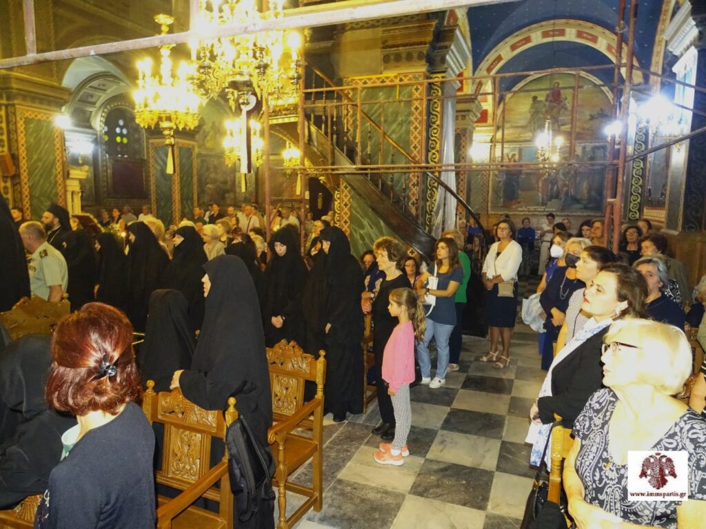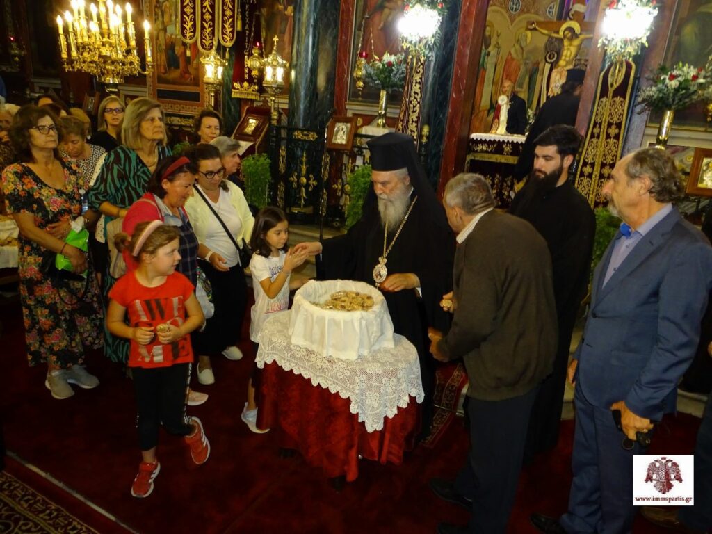 Το απόγευμα της παραμονής της εορτής, Πέμπτη (19/9), στον Μητροπολιτικό Ναό Ευαγγελιστρίας Σπάρτης τελέσθηκε ο πανηγυρικός πολυαρχιερατικός εσπερινός μετ’ αρτοκλασίας, χοροστατούντος του σεβασμιωτάτου Μητροπολίτη Ιερισσού, Αγίου Όρους και Αρδαμερίου κ. Θεοκλήτου.