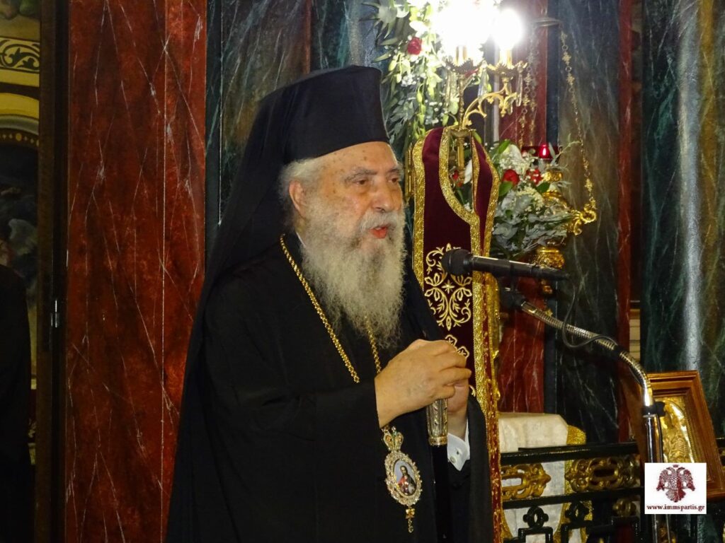 Μετά την ευλόγηση των άρτων, ο σεβασμιώτατος Μητροπολίτης κ. Ευστάθιος ευχαρίστησε τον σεβασμιώτατο Μητροπολίτη Πατρών, για «τη μεγάλη ευλογία που δέχθηκε η Ιερά Μητρόπολή μας», μέσω της προσφοράς των χαριτοβρύτων ιερών λειψάνων του Αγίου Γερβασίου. «Ο νέος Άγιος της Εκκλησίας μας», τόνισε ο σεπτός ποιμενάρχης, «άφησε ανεξίτηλο το αποτύπωμά του τόσο στην Πάτρα, όσο και γενικότερα στην Εκκλησία της Ελλάδος», ενώ και ο ίδιος είχε την ευλογία να τον γνωρίσει κατά την νεότητά του και να εμπνευστεί από την πνευματικότητά του. Στη συνέχεια ζήτησε από τον Μητροπολίτη Πατρών να ομιλήσει για τον νέο Άγιο της Εκκλησίας.