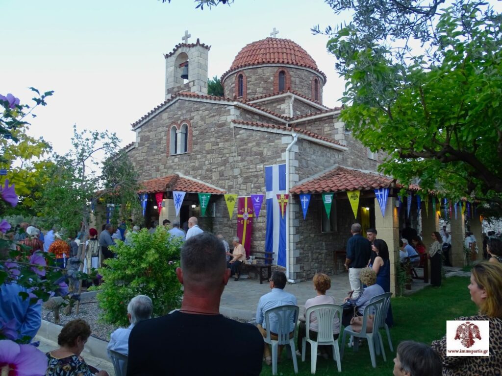 Μάλιστα, ως ανάμνηση της λαμπρής αυτής ημέρας, ο π. Λάζαρος, εκ μέρους της ενορίας, πρόσφερε στον σεβασμιώτατο κ. Συμεών και στον καθηγούμενο της ΙΜ Μεταμορφώσεως τού Σωτήρος π. Σεραφείμ από ένα ιερό επιγονάτιο. Παράλληλα, με την ευκαιρία της επετείου της συμπλήρωσης 44 ετών από την ενθρόνιση του Μητροπολίτη Ευσταθίου, τού ευχήθηκε «υγεία και έτη πολλά, ώστε να συνεχίσει απρόσκοπτα το πλούσιο πνευματικό, φιλανθρωπικό και κοινωνικό του έργο».