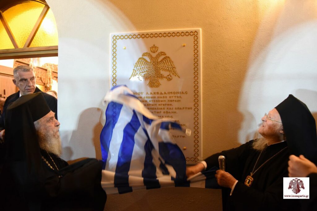 Ακολούθως, στον προαύλιο χώρο τού ναού, αποκαλύφθηκε μαρμάρινη πλάκα, ως ανάμνηση της ιστορικής επίσκεψης και ευλογίας τού Οικουμενικού Πατριάρχη. Η επίσκεψη του Παναγιωτάτου στον νεόδμητο ναό επισφραγίστηκε με συμβολική φύτευση ενός δενδρυλλίου ελαίας.
