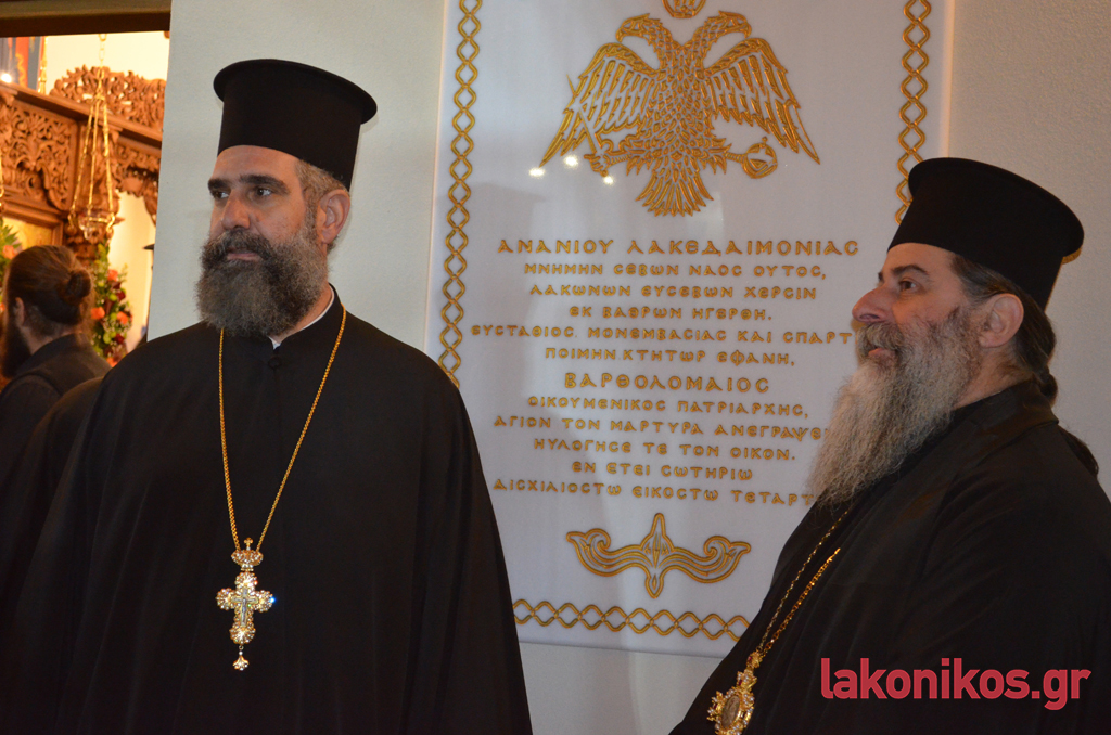 Στην αντιφώνησή του, ο Οικουμενικός Πατριάρχης επεσήμανε αρχικά ότι αποτελεί «ευλογία τού Πανάγαθου Θεού η ύπαρξη νέων Αγίων στην Ορθόδοξη Εκκλησία». Στη συνέχεια εξέφρασε την χαρά του, επειδή του δόθηκε η ευκαιρία να εορτάζει «μαζί με το χριστεπώνυμο πλήρωμα της Μητρόπολης Μονεμβασίας και Σπάρτης, την ανέγερση ενός καλαίσθητου ιερού ναού», ενώ ευχήθηκε «κλήρος και λαός να έχουν την ευχή και τη χάρη τού Αγίου Ανανία».