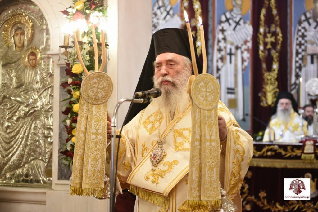 Στη συνέχεια, ο Πατριάρχης μίλησε με θερμά λόγια για τον σεβασμιώτατο κ. Ευστάθιο, για τον οποίο ανέφερε ότι είναι «αντάξιος συνεχιστής τού ποιμαντικού έργου τού Οσίου Νίκωνος, αφού κοσμείται με ανεκτίμητη, πολυεπίπεδη και πολυσχιδή πνευματική και όχι μόνο προσφορά». Ακόμα, ο Παναγιώτατος χαρακτήρισε τον σεπτό ποιμενάρχη, «καύχημα και κεφάλαιο της Εκκλησίας τής Ελλάδος», αναφέροντας χαρακτηριστικά ότι «φέγγει ως λύχνος εν τη σκοτία, οδηγώντας σε ευστάθεια τα των ανθρώπων πράγματα και τις εμπιστευμένες σε αυτόν ψυχές».
