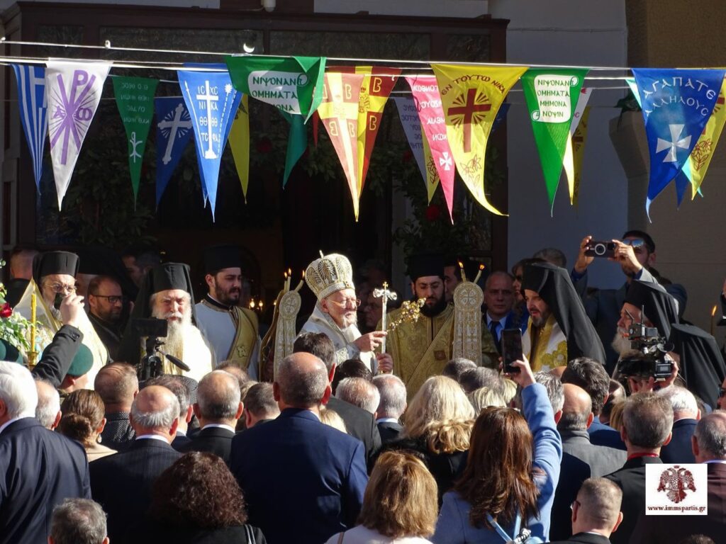 Μετά τη δέηση υπέρ υγείας, στην διασταύρωση των Λεωφόρων Κωνσταντίνου Παλαιολόγου και Λυκούργου, η λιτανευτική πομπή επέστρεψε στη είσοδο του ναού, όπου ο κκ Βαρθολομαίος ευλόγησε τον λαό τής περιοχής, ευχόμενος «να βρίσκεται, δια των πρεσβειών τού πολιούχου Οσίου Νίκωνος, πάντα υπό την Σκέπη τής Αγίας Τριάδος».