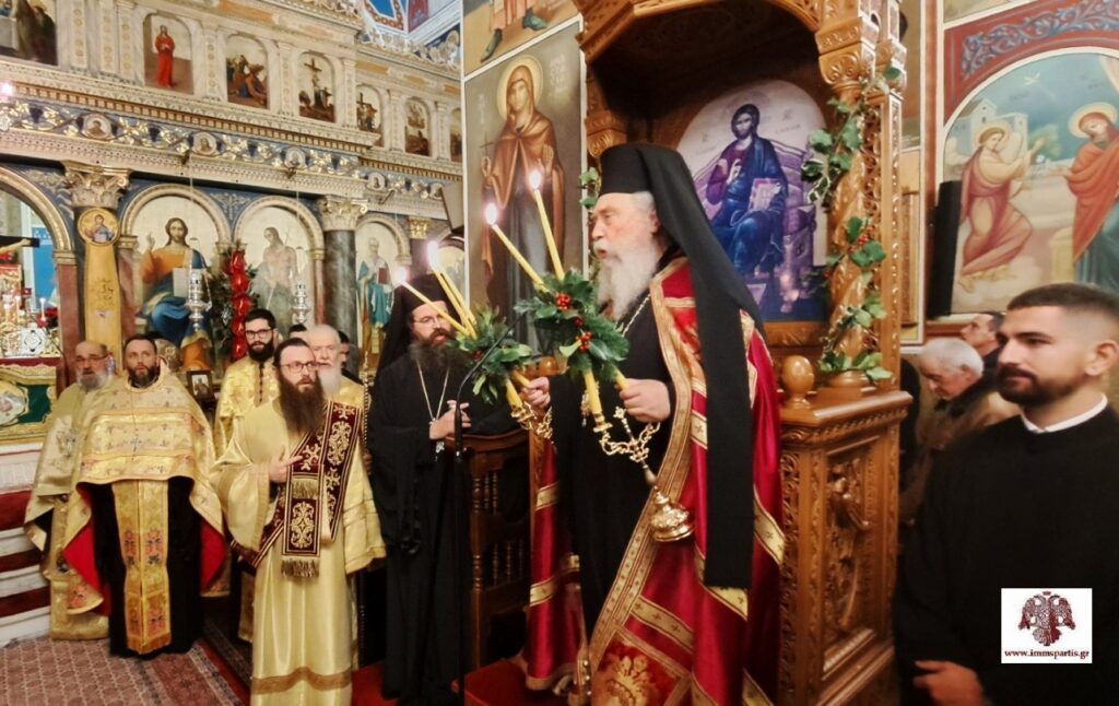 Το απόγευμα της παραμονής των Χριστουγέννων, Τετάρτη 24 Δεκεμβρίου, τελέσθηκε ο δισαρχιερατικός εσπερινός μετ’ αρτοκλασίας, στον πανηγυρίσαντα περικαλλή ΙΝ Γεννήσεως του Χριστού Μολάων. Της ακολουθίας χοροστάτησε ο σεβασμιώτατος Μητροπολίτης κ. Ευστάθιος, ενώ συμμετείχαν ο θεοφιλέστατος Επίσκοπος Λακεδαιμονίας κ. Θεόφιλος και πλειάδα κληρικών της Μητρόπολης Μονεμβασίας και Σπάρτης (ΙΜΜΣ).