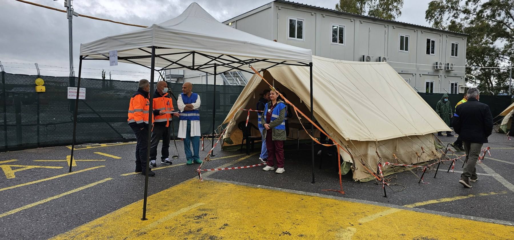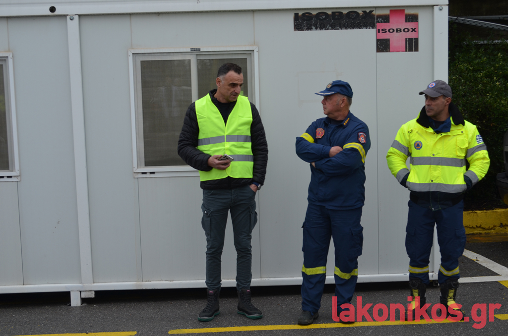 - Η Πολιτική Προστασία του Δήμου Σπάρτης, με την τοποθέτηση των σκηνών στον προβλεπόμενο από το επιχειρησιακό σχέδιο χώρο.
