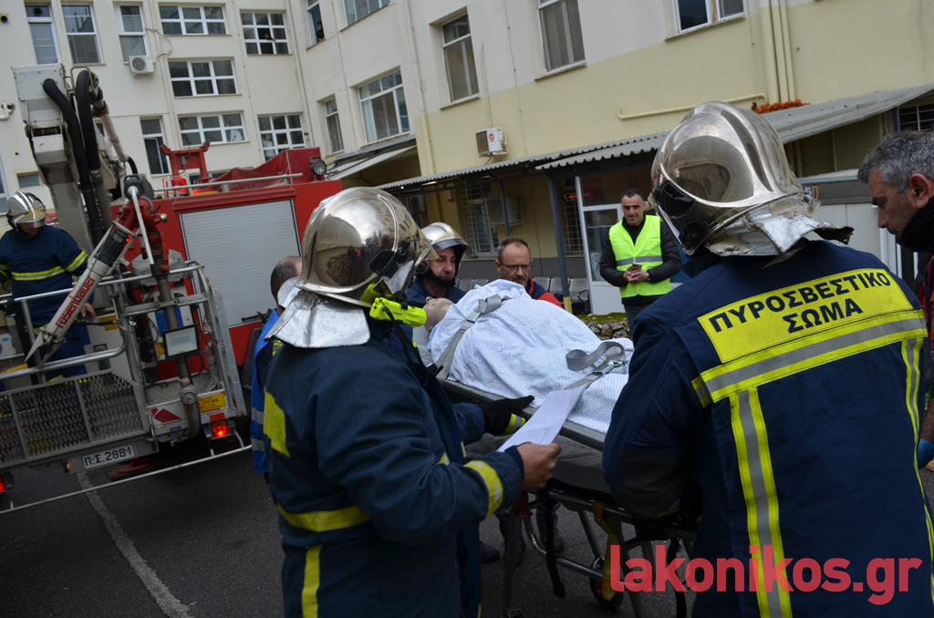 - Η Πυροσβεστική Υπηρεσία Σπάρτης, με συμμετοχή της στον απεγκλωβισμό ασθενών και εργαζομένων του νοσοκομείου, επιχειρώντας και με καλαθοφόρο όχημα στο πεδίο.