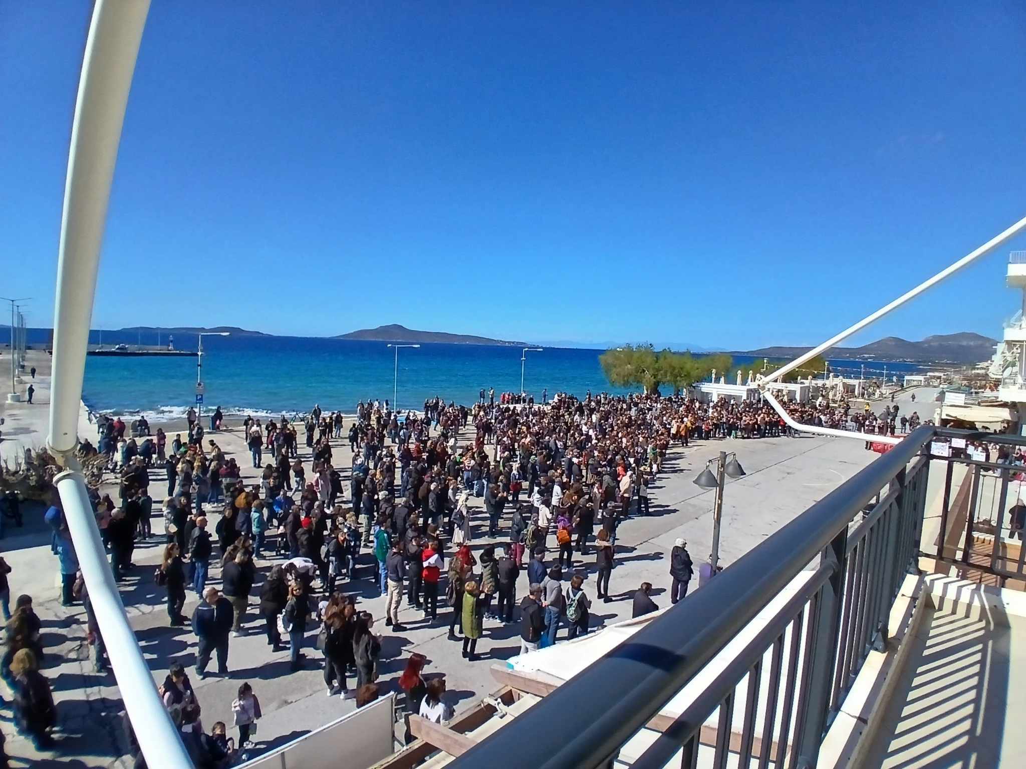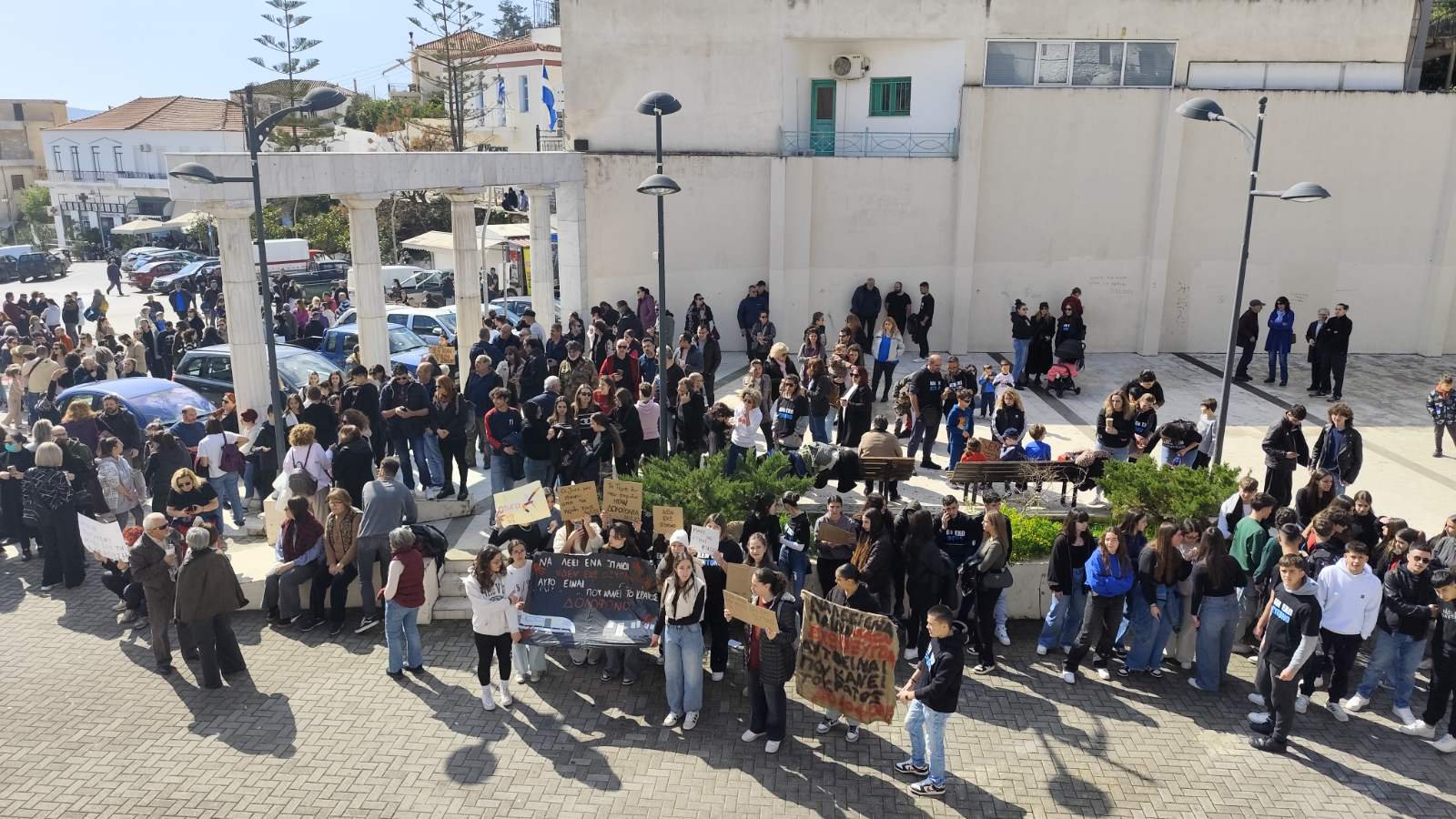 Ένα ανθρώπινο ποτάμι ξεχύθηκε στους δρόμους σε περιοχές του Δ. Μονεμβασίας, όπως οι Μολάοι, η Μονεμβασιά και η Νεάπολη, σε μια ιδιαίτερα συγκινησιακή κι έντονα φορτισμένη ατμόσφαιρα. Άτομα όλων των ηλικιών, με πρωταγωνιστές τους νέους, συγκεντρώθηκαν σε πλατείες και κεντρικούς δρόμους, εκφράζοντας τη συμπαράστασή τους στους οικείους των θυμάτων και ζητώντας απόδοση ευθυνών στους υπαίτιους. Με κεντρικό σύνθημα «δεν έχω οξυγόνο», αλλά και «δεν σας ξεχνάμε», οι συμμετέχοντες ένωσαν τις σκέψεις και τα συναισθήματά τους, με τις οικογένειες των θυμάτων, αλλά και τους εκατοντάδες χιλιάδες πολίτες που την ίδια ώρα διαδήλωναν σε όλη τη χώρα. Μάλιστα, στη Μονεμβασιά οι πολίτες κινήθηκαν σε πορεία από τον νέο οικισμό έως την καστροπολιτεία.