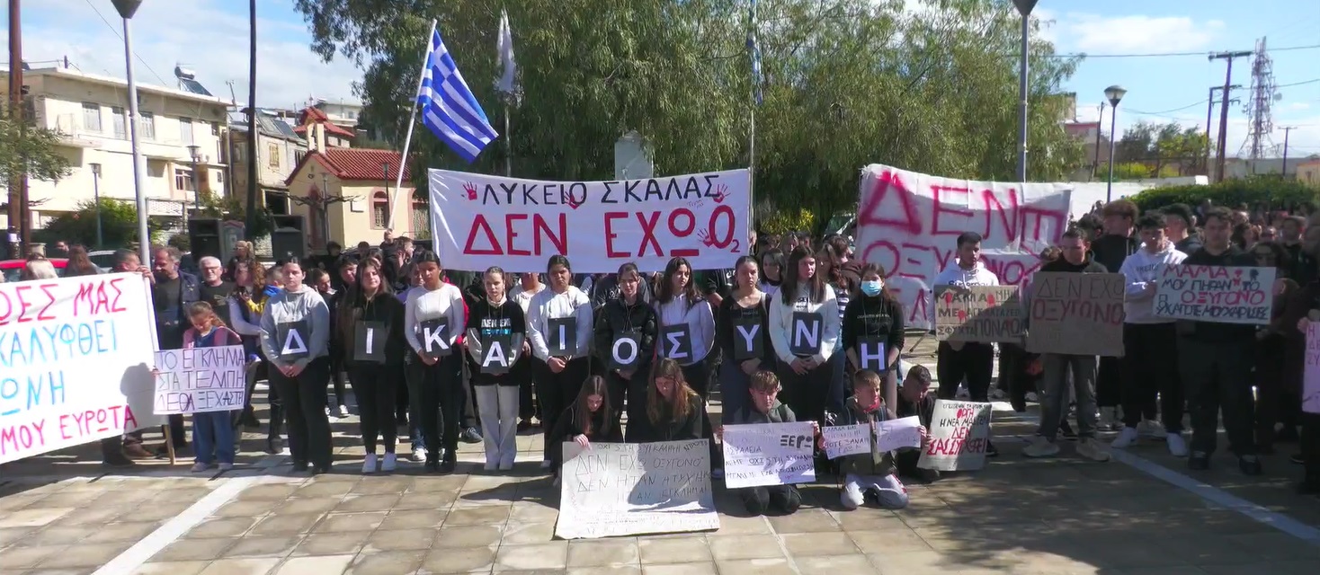Δυναμικές ήταν οι συγκεντρώσεις διαμαρτυρίας και στην πρωτεύουσα του Δήμου Ευρώτα, Σκάλα. Στην Πλατεία Πηγών, εργαζόμενοι, αγρότες, μαθητές και άλλες δεκάδες πολιτών, φώναξαν συνθήματα για απόδοση δικαιοσύνης και πολιτικές που θα διασφαλίσουν ότι η χώρα δεν θα θρηνήσει ξανά έναν ανάλογο όλεθρο.