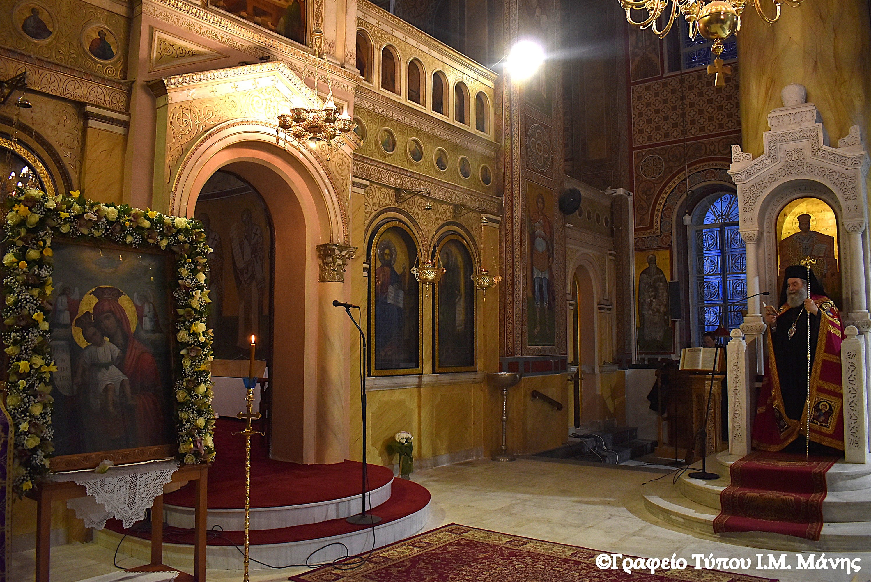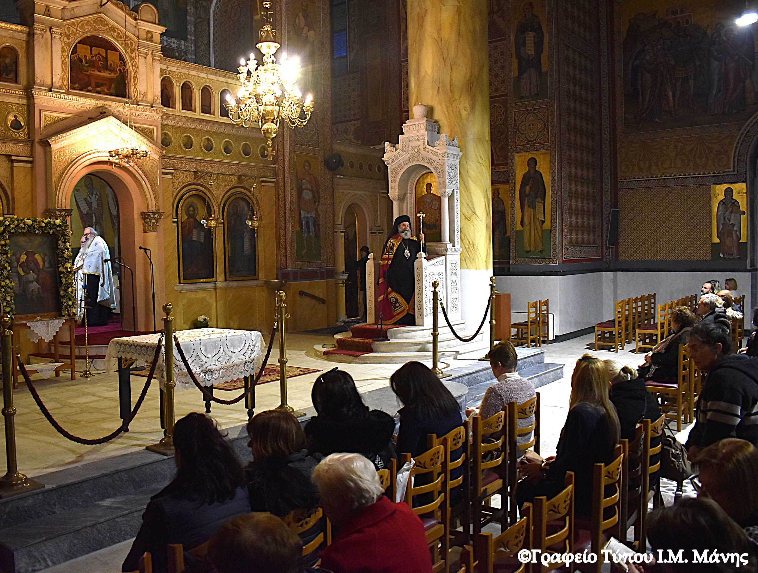 Ο σεβασμιώτατος Μητροπολίτης Μάνης κ. Χρυσόστομος Γ΄, κατόπιν άδειας και ευλογίας του σεβ. Μητροπολίτη Πειραιώς κ. Σεραφείμ, χοροστάστησε στους Γ' Χαιρετισμούς, την Παρασκευή (21/3), στον ΙΝ Αγίας Σοφίας στα Μανιάτικα Πειραιά.