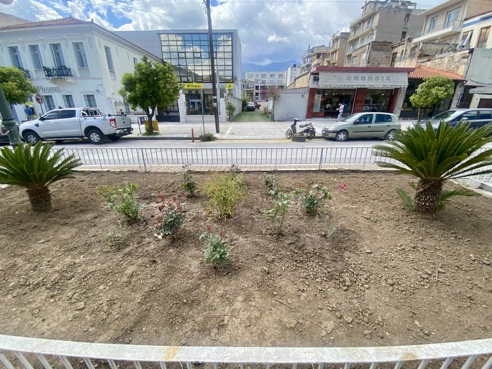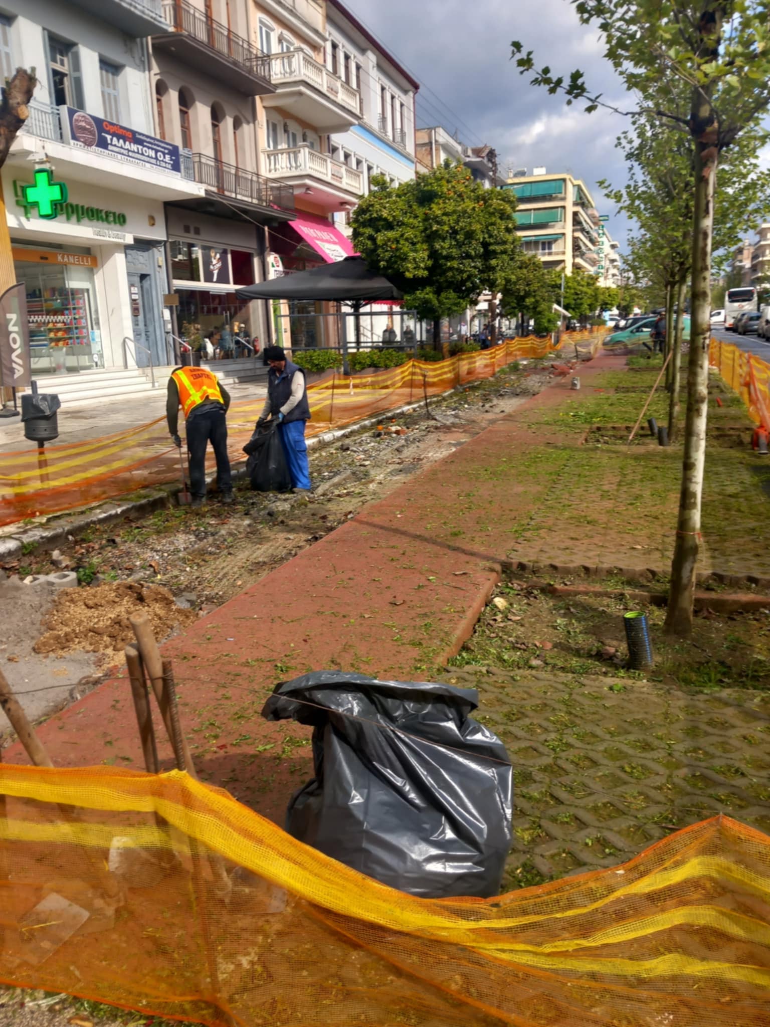 Προ ημερών είχε απομακρυνθεί και ο περιφραγμένος χώρος, όπου η ανάδοχος εταιρεία αποθήκευε τον εξοπλισμό-υλικά κλπ, στο ύψος της οδού Ευαγγελιστρίας. Ακριβώς δίπλα, στο παρτέρι, φυτεύτηκαν και δύο νέοι φοίνικες, να αναμοχλεύουν κάτι από το παρελθόν των εκριζωμένων «προγόνων» τους.