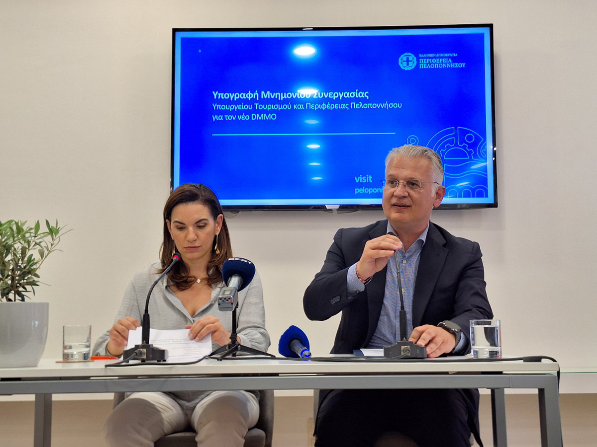 Οι βάσεις για μια βιώσιμη και διαρκή τουριστική ανάπτυξη στην Πελοπόννησο, προάγοντας τη συμμετοχή όλων των εμπλεκομένων φορέων και την αποδοτική αξιοποίηση των διαθέσιμων πόρων, μπήκαν χθες Παρασκευή (9/5). Η υπουργός Τουρισμού, Όλγα Κεφαλογιάννη και ο περιφερειάρχης Πελοποννήσου, Δημήτρης Πτωχός, προχώρησαν σε υπογραφή μνημονίου συνεργασίας για τη σύσταση και λειτουργία τού πολλά υποσχόμενου Οργανισμού Διαχείρισης και Προώθησης Προορισμού (DMMO). Στο πλαίσιο της επισφράγισης της συμφωνίας, παρουσιάστηκαν τα πολλαπλά οφέλη που προσφέρει η λειτουργία των DMMOs στην εθνική τουριστική στρατηγική. Επίσης, συζητήθηκε ο σχεδιασμός εφαρμογής του θεσμού στην Πελοπόννησο, εστιάζοντας στις ανάγκες της περιοχής και στις προοπτικές συνεργασιών για την υλοποίηση του πελοποννησιακού Οργανισμού.