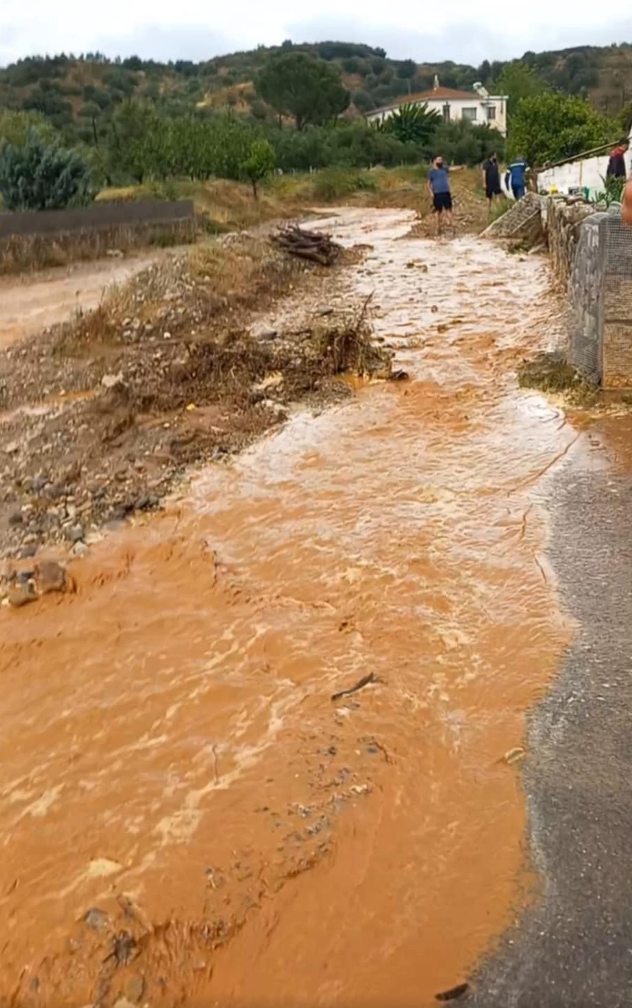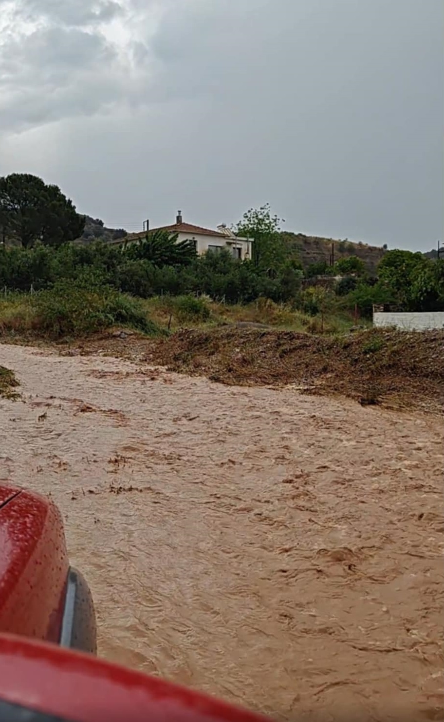 Στον δρόμο προς Χρύσαφα σημειώθηκε κατολίσθηση, ενώ φρεάτιο στη Σκούρα παρασύρθηκε από τα ορμητικά νερά.
