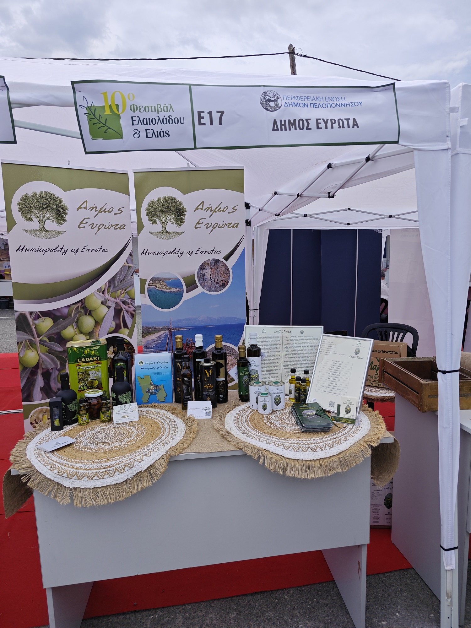 Ο Δ. Ευρώτα δήλωσε ισχυρό «παρών» και στο 10ο «Φεστιβάλ Ελιάς και Ελαιολάδου», που πραγματοποιήθηκε στο Πάρκο Κυκλοφοριακής Αγωγής στην Καλαμάτα, από 30/5-1/6. Στο πλαίσιο της διοργάνωσης, ο δήμος συμμετείχε στο περίπτερο της Περιφερειακής Ένωσης Δήμων Πελοποννήσου (ΠΕΔ). Φιλοξενήθηκαν προϊόντα από επιχειρήσεις της περιοχής, οι οποίες ανταποκρίθηκαν θετικά στο κάλεσμα του Δ. Ευρώτα. Οι επισκέπτες είχαν την ευκαιρία να δοκιμάσουν και να γνωρίσουν από κοντά τη μοναδική ποιότητα των τοπικών ελιών και του ελαιολάδου, καθώς και άλλων παραγώγων της ελιάς, αναδεικνύοντας τη γευστική και πολιτισμική κληρονομιά της περιοχής. Από τον Δ. Ευρώτα προσβλέπουν «σε ακόμα μεγαλύτερη συμμετοχή σε μελλοντικές εκθέσεις».