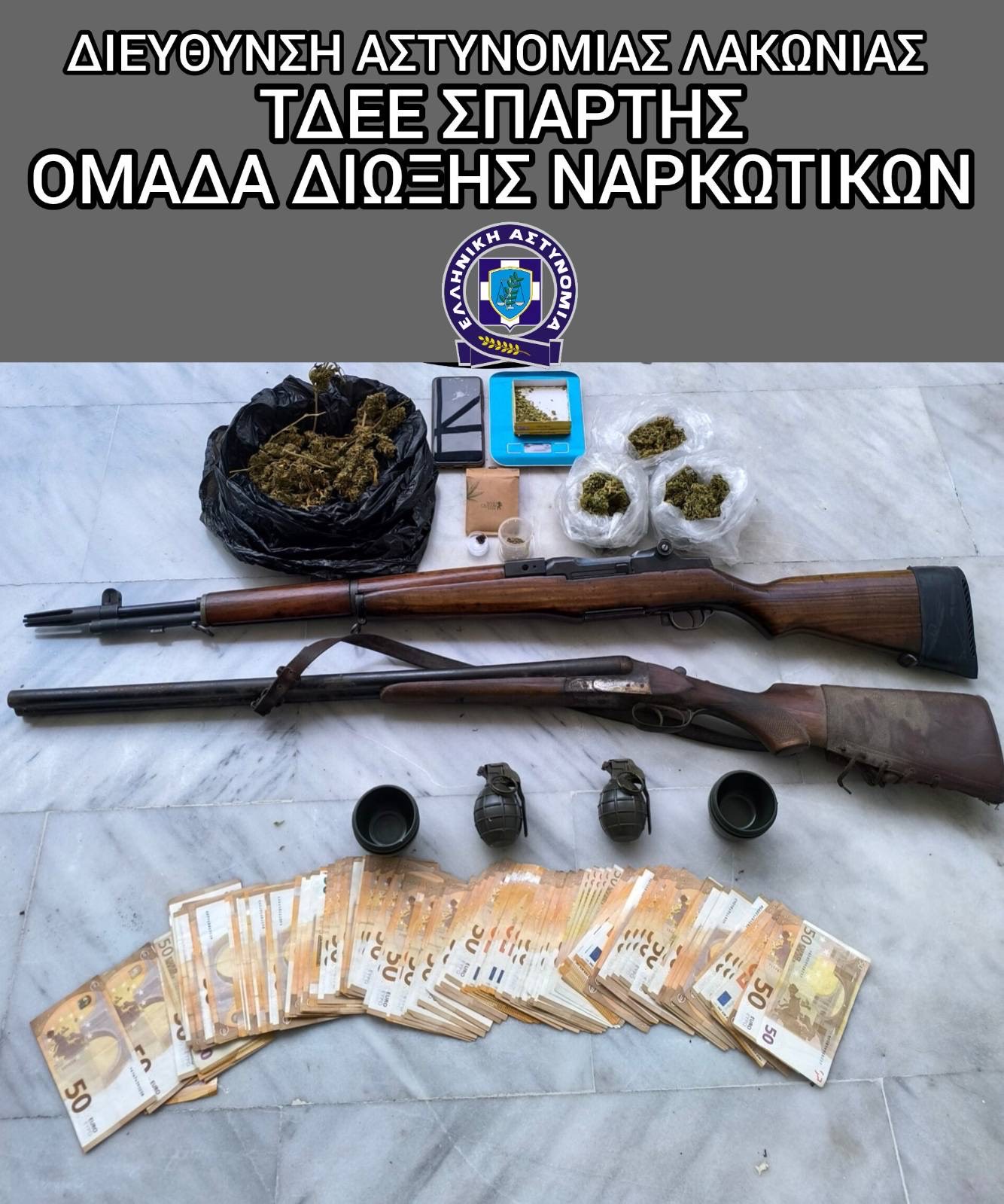 Έναν απροσδόκητο «θησαυρό» ναρκωτικών και οπλισμού έκρυβε ο κήπος και η κατοικία ενός 70χρονου στη Λακωνία, ο οποίος συνελήφθη το πρωί του περασμένου Σαββάτου (21/6) από αστυνομικούς της Ομάδας Δίωξης Ναρκωτικών του Τμήματος Δίωξης και Εξιχνίασης Εγκλημάτων Σπάρτης.