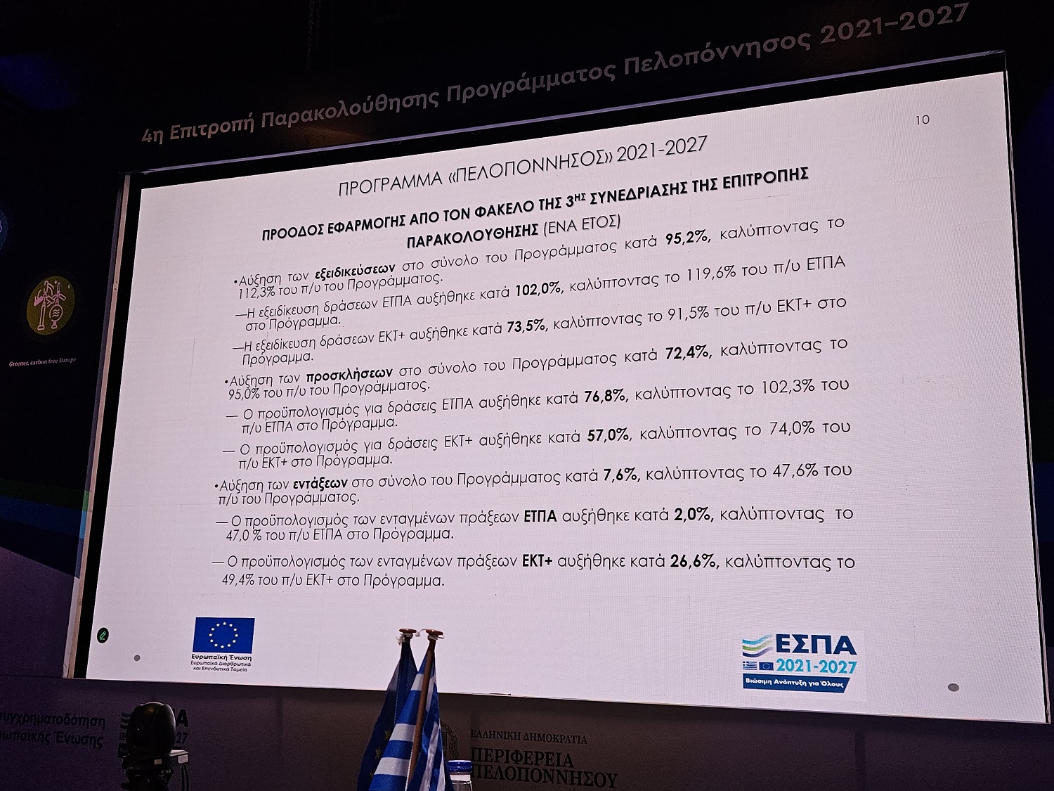 Καταλήγοντας, ο Σπύρος Τζινιέρης υπογραμμίζει: «Η Περιφέρεια Πελοποννήσου αξιοποιεί το ΕΣΠΑ ως στρατηγικό εργαλείο για τον μετασχηματισμό του παραγωγικού μοντέλου της περιοχής. Στόχος μας δεν είναι απλώς η απορρόφηση πόρων, αλλά η στοχευμένη επένδυση σε παρεμβάσεις που χτίζουν υποδομές ανθεκτικότητας, ενισχύουν την κοινωνική συνοχή και προωθούν την καινοτομία. Μέσα από συνέργειες με τους τοπικούς φορείς και με έμφαση στη διαφάνεια και την αποδοτικότητα, διαμορφώνουμε μια νέα αναπτυξιακή ταυτότητα για την Πελοπόννησο, με σταθερή πυξίδα την αειφορία και τη βιώσιμη ανάπτυξη».