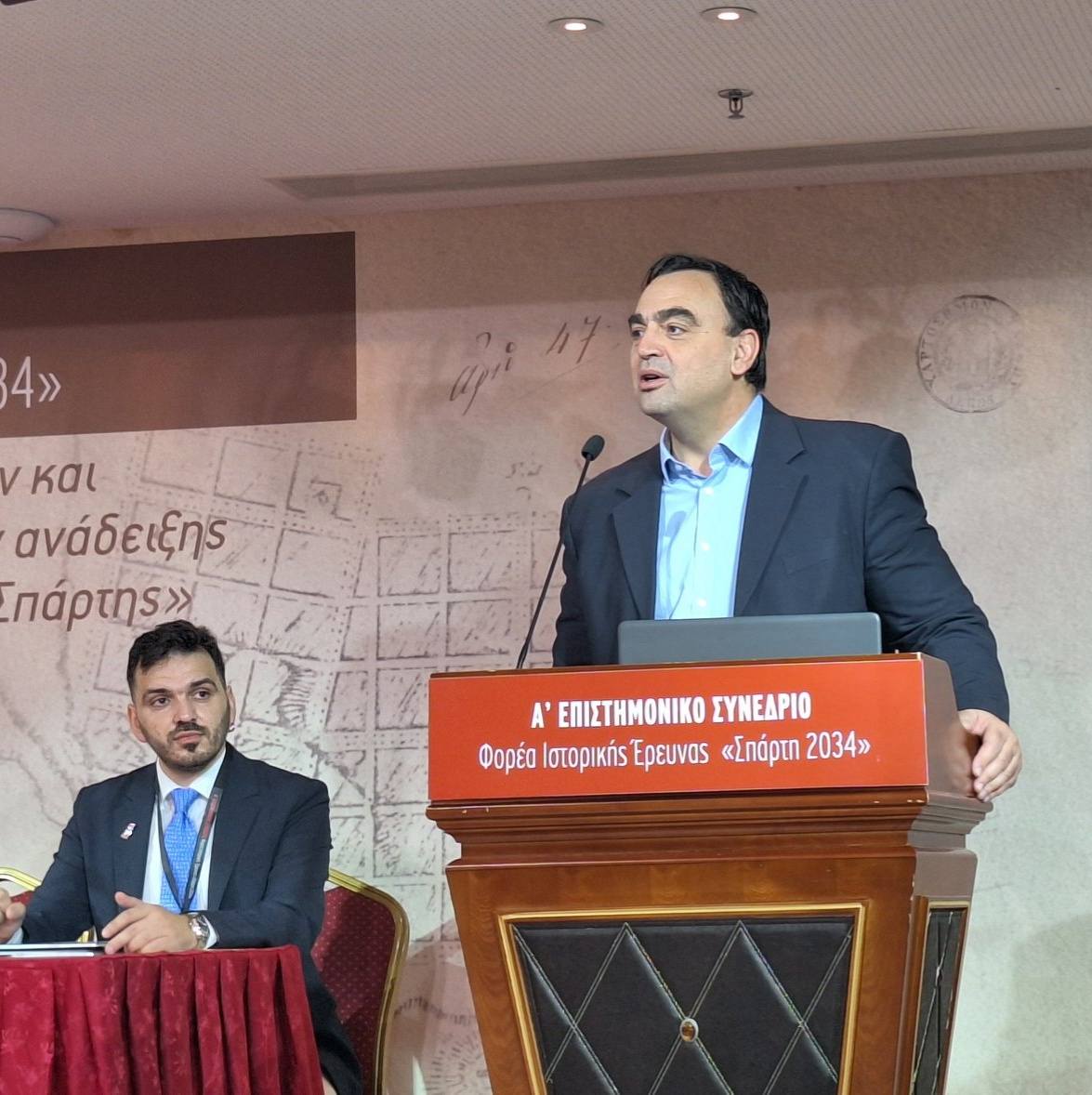 Ο αντιπεριφερειάρχης Λακωνίας, Θεόδωρος Βερούτης, που συμμετείχε στο συνέδριο, αφού συνεχάρη τους διοργανωτές για την άρτια διοργάνωση, μεταξύ άλλων δήλωσε: «Σας μεταφέρω καταρχάς τον θερμό χαιρετισμό του περιφερειάρχη Πελοποννήσου, Δημήτρη Πτωχού, και τα συγχαρητήριά του στους διοργανωτές για το πολύ σημαντικό ιστορικό συνέδριό σας. Το πλούσιο αρχειακό απόθεμα της Σπάρτης, που αφορά στην καθημερινότητα των κατοίκων της, στον τρόπο διοίκησης και εκπαίδευσης, αλλά και στους αγώνες τους, δεν είναι απλώς παρελθόν. Είναι ζωντανή κληρονομιά που αξίζει να διασωθεί και να μεταδοθεί στις επόμενες γενιές. Ακριβώς γι’ αυτό το λόγο η ψηφιοποίηση των αρχείων δεν είναι μόνο μία πράξη διάσωσης, αλλά μία γέφυρα ανάμεσα στο παρελθόν και το μέλλον. Εύχομαι η σημερινή εκδήλωση να είναι η απαρχή για μία ακόμα πιο συστηματική προσπάθεια ανάδειξης του αρχειακού πλούτου της Σπάρτης γιατί, όπως έχει εύστοχα ειπωθεί “ένας λαός χωρίς μνήμη, είναι λαός χωρίς μέλλον”. Ως Περιφέρεια Πελοποννήσου και ως Περιφερειακή Ενότητα Λακωνίας, στεκόμαστε αρωγοί σε κάθε πρωτοβουλία που υπηρετεί την ιστορική μνήμη και τον πολιτισμό».