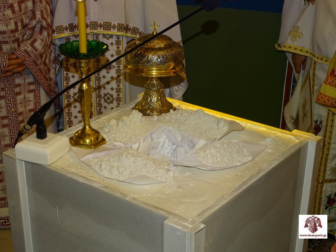 Μια ημέρα νωρίτερα, το απόγευμα της Παρασκευής (18/7), στον ιερό ναό τελέσθηκε -με μεγαλοπρέπεια και ιεροπρέπεια- ο εσπερινός των εγκαινίων. Αρχικά, στον περιβάλλοντα χώρο, προπορευομένων του Ιερού Ευαγγελίου, δεκάδων κληρικών, των ιεροψαλτών και της Φιλαρμονικής του Δ. Σπάρτης, έγινε η υποδοχή των ιερών λειψάνων, τα οποία μετέφερε ο σεβασμιώτατος Μητροπολίτης κ. Ευστάθιος. Στην υποδοχή συμμετείχαν επίσης τοπικοί άρχοντες και πολλοί πιστοί. Αμέσως μετά, εντός του ιερού βήματος του ναού, έλαβε χώρα η τελετή καταθέσεως των ιερών λειψάνων, προεξάρχοντος του σεπτού Ποιμενάρχη, ενώ ακολούθησε ο αρχιερατικός εσπερινός.