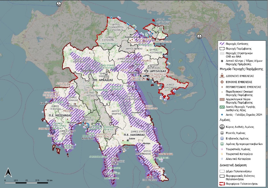 Ως περιοχή παρέμβασης προτείνεται το σύνολο των περιοχών της Περιφέρειας Πελοποννήσου, πλην των περιοχών για τις οποίες προγραμματίζεται ΟΧΕ, αλλά και όσων αστικών κέντρων έχουν ΒΑΑ. Αντίστοιχα ως περιοχή εστίασης (γραμμοσκιασμένες περιοχές) προσδιορίζονται τα σημεία εκείνα της περιοχής παρέμβασης, που διαθέτουν ειδικότερα αναπτυξιακά χαρακτηριστικά συναφή με την υπό εκπόνηση στρατηγική, όπως ιδιαίτερο φυσικό ή/και πολιτιστικό πλούτο. Όραμα της στρατηγικής αποτελεί η ανάδειξη της Πελοποννήσου σε τόπο φιλόξενο, πολυδιάστατο και βιώσιμο, ελκυστικό σε κατοίκους, επισκέπτες και επενδυτές: Έναν τόπο με ισχυρή ταυτότητα και δυναμικό, όπου αναπτύσσονται συνέργειες, ενισχύεται η συμμετοχή και προωθούνται πολιτικές και δράσεις για τη σύνδεση του τουρισμού, της δημιουργικής οικονομίας, της επιχειρηματικότητας και της καινοτομίας με τις τοπικές κοινότητες και την καθημερινή ζωή.