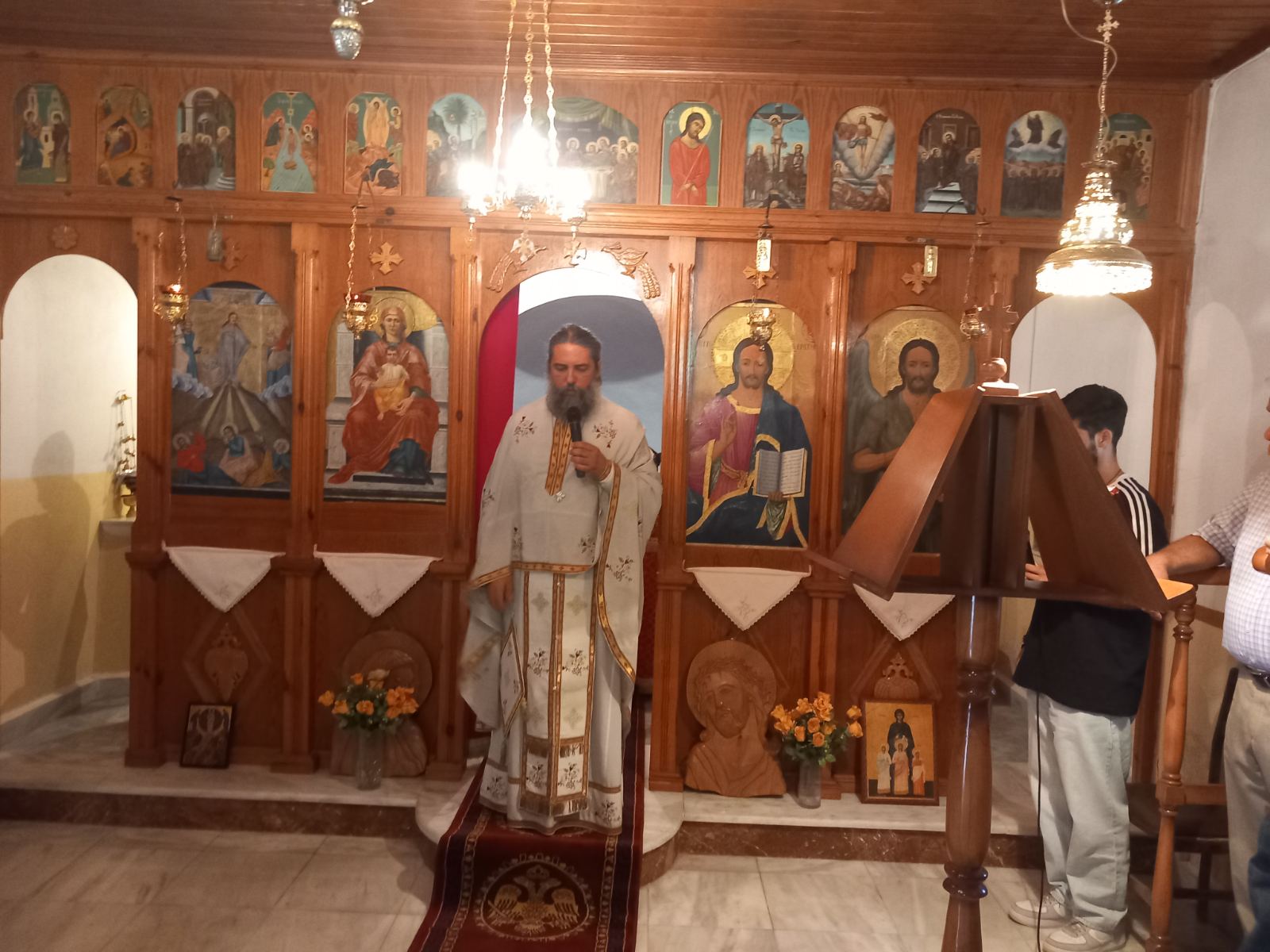 Τη λειτουργία στο όμορφο πετρόκτιστο ξωκκλήσι τέλεσε ο εφημέριος Ανωγείων Λακωνίας, π. Ανδρέας Κόνιαρης, όπου Ανωγειάτες και κάτοικοι των χωριών της Φάριδας επιλέγουν παραδοσιακά για να εκκλησιαστούν κατά τη μεγάλη αυτή εορτή της Ορθοδοξίας.