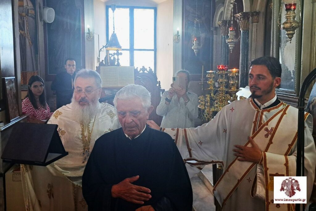Αμέσως μετά, ο σεβασμιώτατος τίμησε τον 91 ετών ιεροψάλτη του χωριού, κ. Κωνσταντίνο Λεκάκη, για την πολυετή και συνεπή διακονία του στο ιερό αναλόγιο.