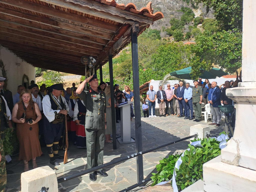 Η εκδήλωση ολοκληρώθηκε με την εκφώνηση του πανηγυρικού της ημέρας από τον επίτιμο διοικητή της 1ης Στρατιάς, Αντιστράτηγο ε.α. Δημόκριτο Κωνσταντάκο, ο οποίος αναφέρθηκε με συγκίνηση και περηφάνια στον ηρωισμό των Μανιατών αγωνιστών.