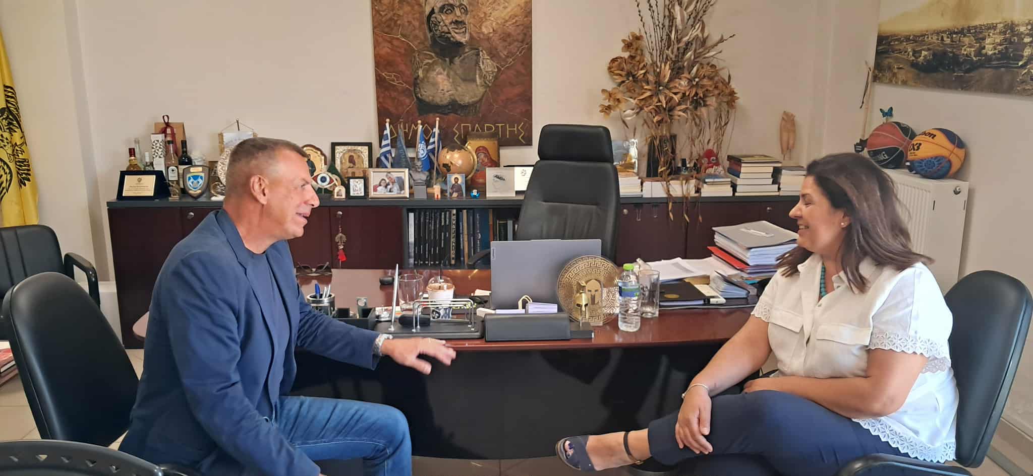 Εθιμοτυπική συνάντηση με τη νέα επικεφαλής του ΓΝ Λακωνίας, είχε την Πέμπτη (4/9) και ο δήμαρχος Σπάρτης, Μιχάλης Βακαλόπουλος. Η συνάντηση έγινε σε πολύ καλό κλίμα, «αναδεικνύοντας το άριστο επίπεδο σχέσεων και αγαστής συνεργασίας που είναι εδραιωμένο μεταξύ της Δημοτικής Αρχής Σπάρτης και της διοίκησης του ΓΝ Λακωνίας», επισημαίνεται αρμοδίως.