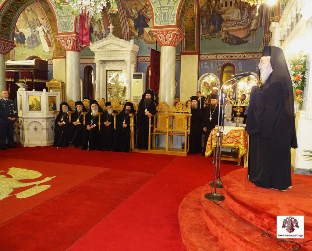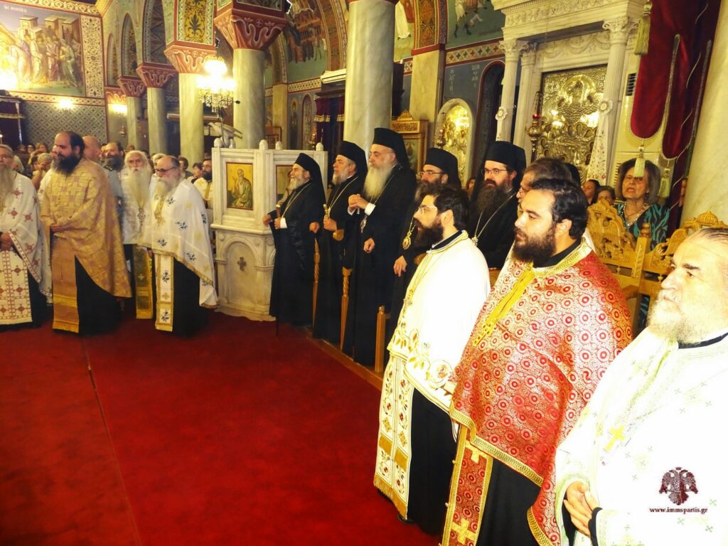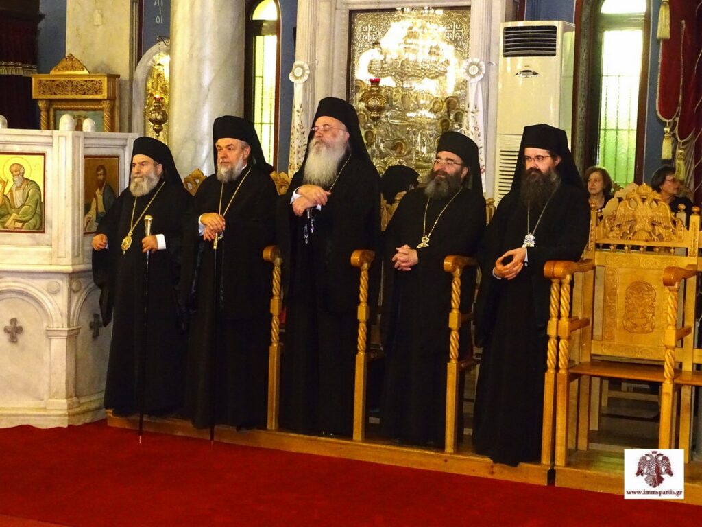 Στην ιερά σύναξη χοροστάτησε ο σεβασμιώτατος Μητροπολίτης Μεσσηνίας κ. Χρυσόστομος, πλαισιούμενος από τους σεβασμιωτάτους Μητροπολίτες Πατρών κ. Χρυσόστομο, Φωκίδος κ. Θεόκτιστο, Ηλείας κ. Αθανάσιο, Γλυφάδας κ. Αντώνιο, Σταγών και Μετεώρων κ. Θεόκλητο, Μάνης κ. Χρυσόστομο, Γόρτυνος και Μεγαλοπόλεως κ. Νικηφόρο και Μαντινείας και Κυνουρίας κ. Επιφάνιο, καθώς και τους θεοφιλεστάτους Επισκόπους Τεγέας κ. Θεόκλητο και Λακεδαιμονίας κ. Θεόφιλο. Παρών ήταν και ο πανοσιολογιώτατος Αρχιμανδρίτης π. Ιωάννης Καραμούζης, αρχιγραμματέας της Ιεράς Συνόδου της Εκκλησίας της Ελλάδος.