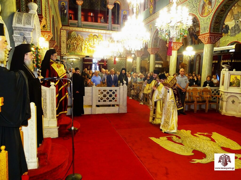 Το απόγευμα της Παρασκευής 19 Σεπτεμβρίου, στον Ιερό Ναό Οσίου Νίκωνος του Μετανοείτε, πολιούχου Σπάρτης, τελέστηκε πανηγυρικός πολυαρχιερατικός Εσπερινός μετ’ αρτοκλασίας, στον οποίον συμμετείχαν πολλοί ιεράρχες της Εκκλησίας της Ελλάδος, κληρικοί, μοναστικές αδελφότητες, εκπρόσωποι των αρχών και πλήθος ευσεβών χριστιανών. Κατά την διάρκεια της Ακολουθίας, τέθηκε εις προσκύνησιν απότμημα των Ιερών Λειψάνων του Αγίου Ευσταθίου, το οποίο φυλάσσεται στην Ιερά Μητρόπολή μας, προς ευλογία και πνευματική ενίσχυση του ιερού κλήρου και του πιστού λαού.