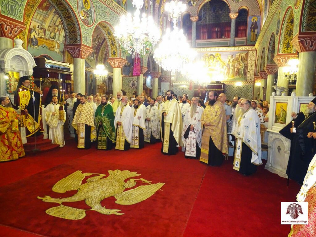 Μετά το πέρας της πανηγυρικής εσπερινής λατρευτικής σύναξης, ο σεπτός Ποιμενάρχης μας δέχθηκε τις ευχές των πιστών εντός του Ναού προσφέροντας παράλληλα ένα κέρασμα.