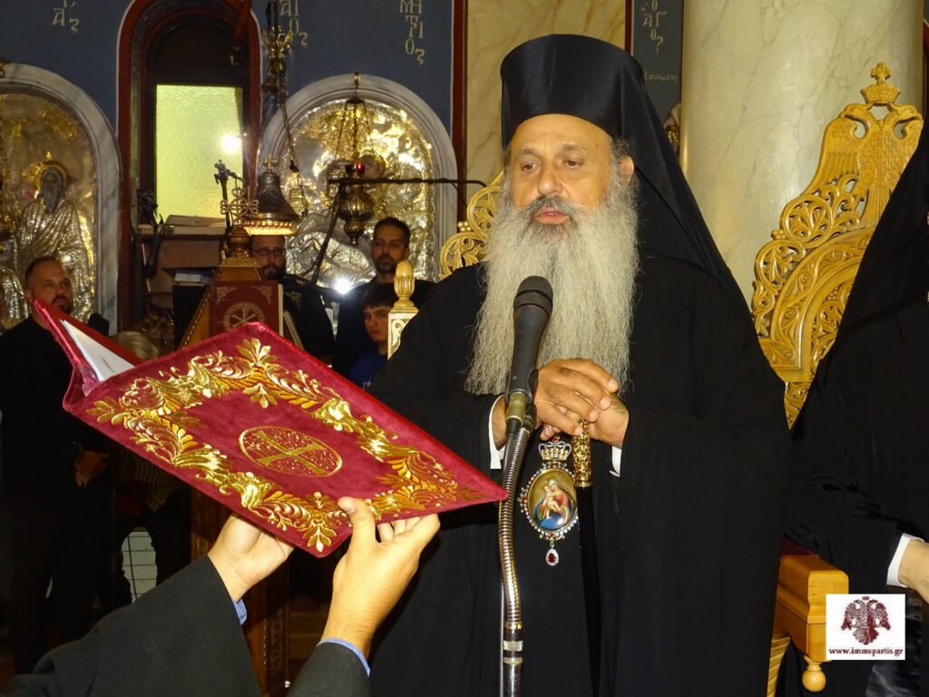 Με την ολοκλήρωση του Εσπερινού, ο εορτάζων ποιμενάρχης μας απηύθυνε σύντομο ευχαριστήριο λόγο. Αρχικά, ευχαρίστησε τον Πανάγαθο Θεό που επέτρεψε να εορτάσει για άλλη μια χρονιά τα Ονομαστήριά του. Στη συνέχεια εξέφρασε ευγνώμονες ευχαριστίες προς τον σεβασμιώτατο Μητροπολίτη Μεσσηνίας για την εμπνευσμένη ομιλία του και για τα καρδιακά λόγια αγάπης για την ελαχιστότητά του, τους σεβασμιωτάτους Μητροπολίτες, τους θεοφιλεστάτους Επισκόπους, τον Αρχιγραμματέα της Ιεράς Συνόδου της Εκκλησίας της Ελλάδος, τους κληρικούς τόσο της Ιεράς Μητροπόλεώς μας, όσο και άλλων περιοχών που συμμετείχαν στον Εσπερινό, τις μοναχικές αδελφότητες, τους τοπικούς άρχοντες, αλλά και των όμορων Νομών, όπως και τον ευσεβή λαό, για την παρουσία και την αγάπη του.