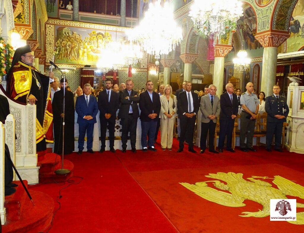 Στην εσπερινή λατρευτική πανήγυρη παρέστησαν, μεταξύ άλλων, ο υφυπουργός Προστασίας του Πολίτη και βουλευτής Μεσσηνίας Ιωάννης Λαμπρόπουλος, ο υφυπουργός Εθνικής Άμυνας και βουλευτής Λακωνίας Αθανάσιος Δαβάκης, οι αντιπεριφερειάρχες Λακωνίας, Μεσσηνίας και Χωρικού Σχεδιασμού, Θεόδωρος Βερούτης, Ευστάθιος Αναστασόπουλος και Σπυρίδων Τζινιέρης αντίστοιχα, οι δήμαρχοι Σπάρτης και Γορτυνίας, Μιχαήλ Βακαλόπουλος και Ευστάθιος Κούλης, καθώς και εκπρόσωποι των στρατιωτικών και αστυνομικών αρχών.
