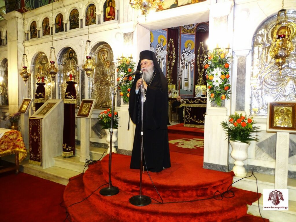 Απευθυνόμενος στο χριστεπώνυμο πλήρωμα, επεσήμανε ότι, όπως τον καλό καραβοκύρη τον κάνει η τρικυμία και τον καλό στρατηγό ο πόλεμος, έτσι και τον καλό χριστιανό τον κάνουν οι δοκιμασίες που θα πρέπει να αντιμετωπίζονται με πίστη, προσευχή και υπομονή. Παράλληλα, ευχήθηκε στους ευλαβείς χριστιανούς να έχουν θυσιαστική αγάπη στην καρδιά τους προς όλους ανεξαιρέτως, υγεία για να αντέχουν, φωτισμό για να κρίνουν σωστά και τόλμη για να παίρνουν σωστές θέσεις.